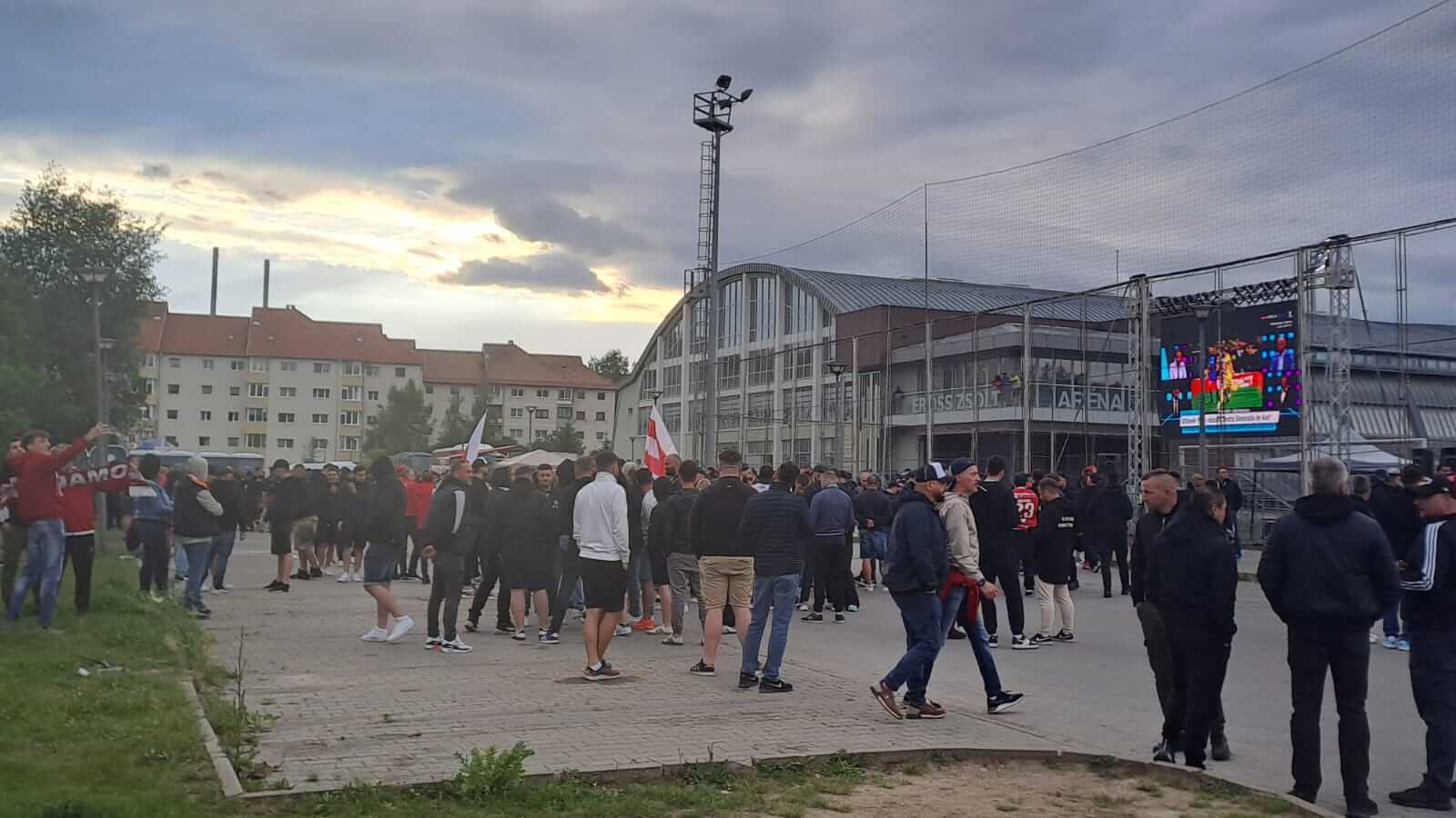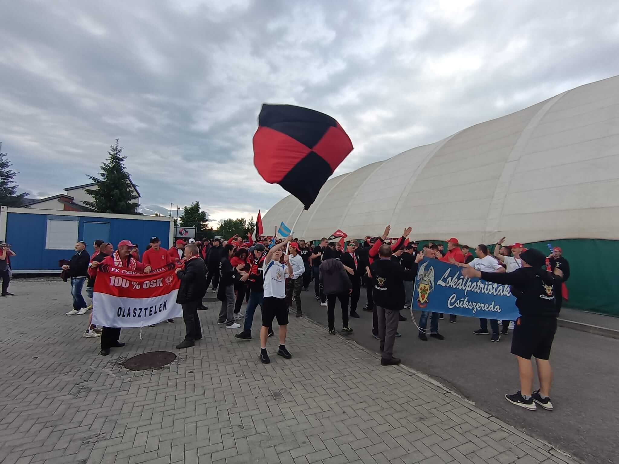 Az Erőss Zsolt Aréna parkolójában tartózkodó szurkolók a mérkőzés első félidejének hajrájában rákapcsoltak csapatuk buzdítására.