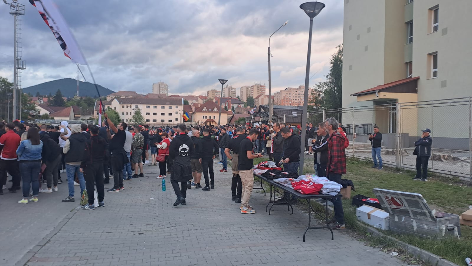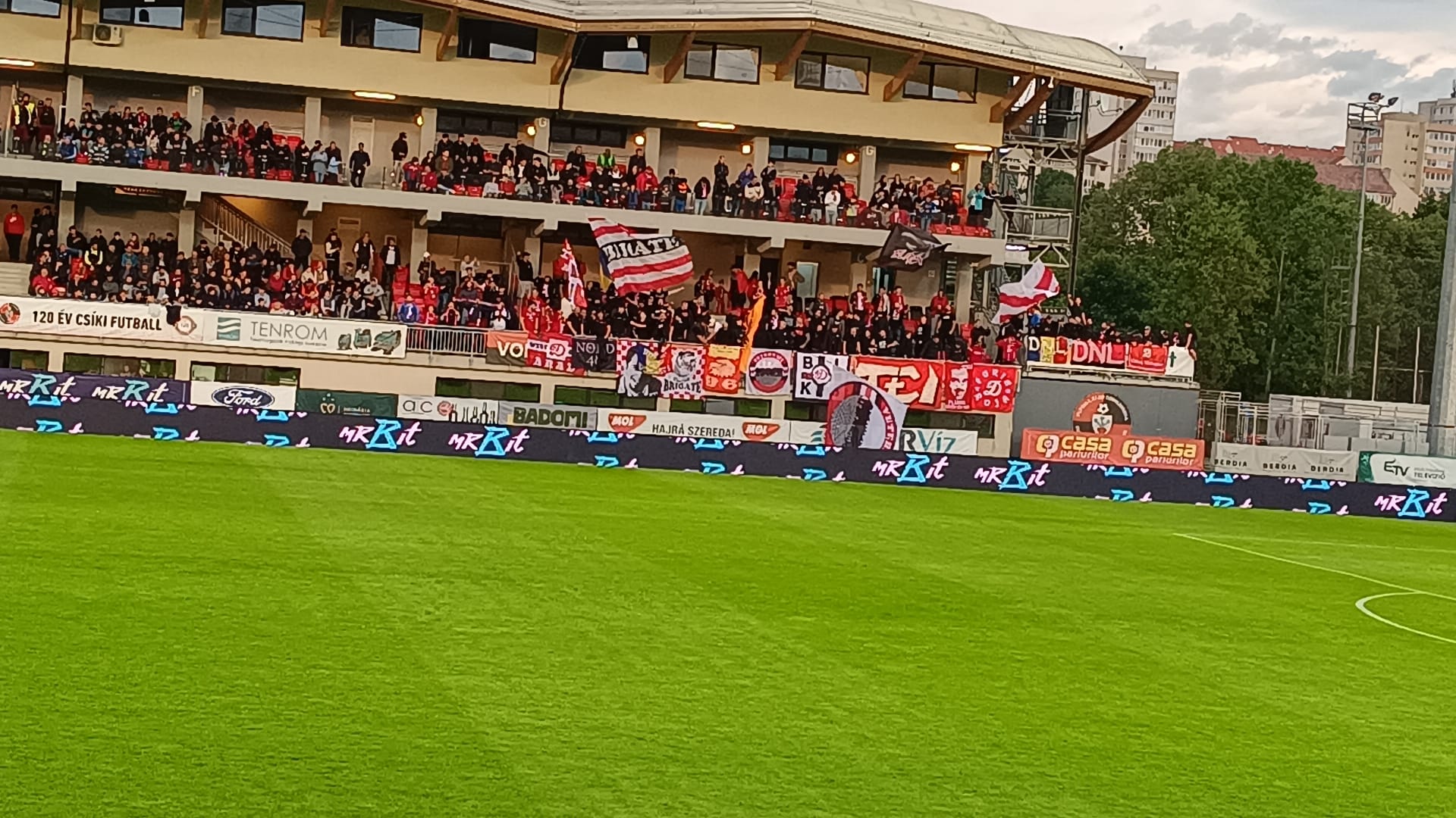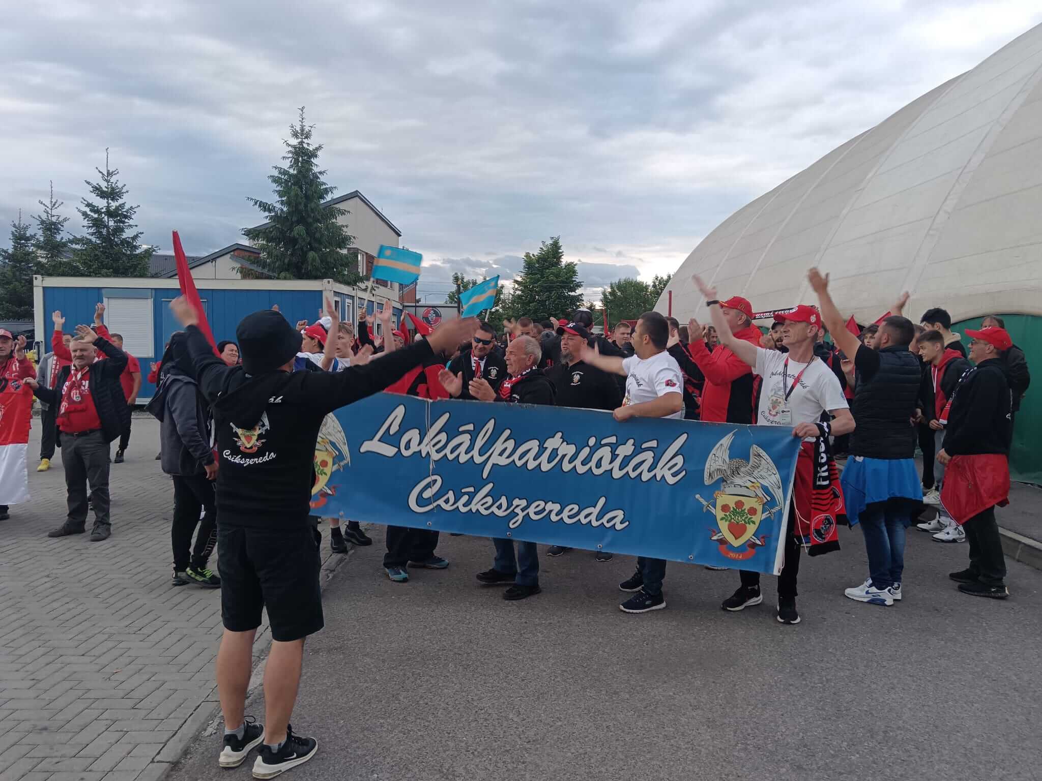 Az FK Csíkszereda szurkolói is érkeznek a lelátókra. Felfokozott a hangulat.
