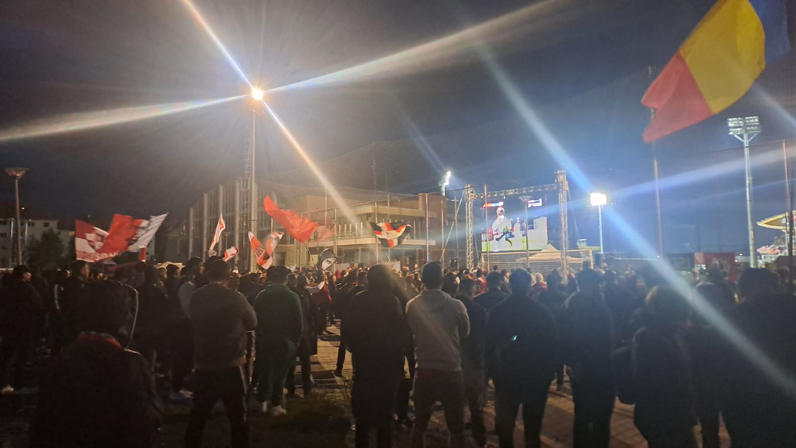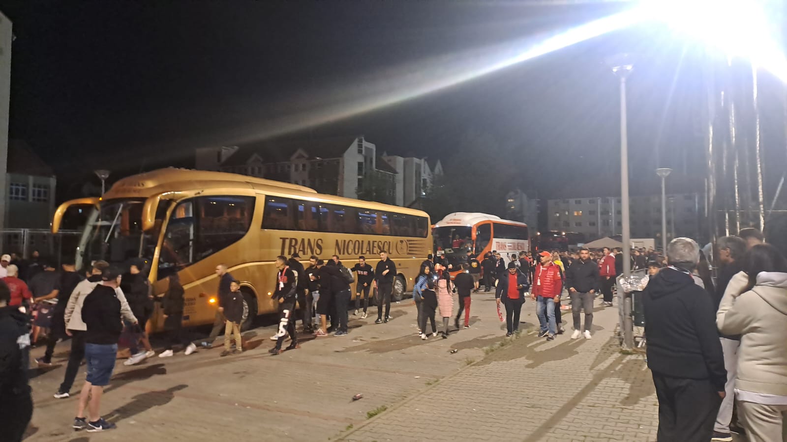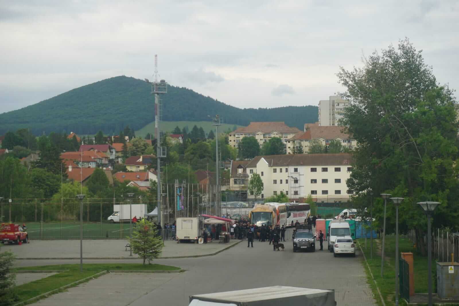 Folyamatosan jönnek a Bukaresti Dinamo szurkolói. Helyszínen lévő kollégánk tájékoztatása szerint óriási a hatósági jelenlét a pálya körül. Mint beszámoltunk róla, 1000-1500 Dinamo-drukkert várnak a meccsre.