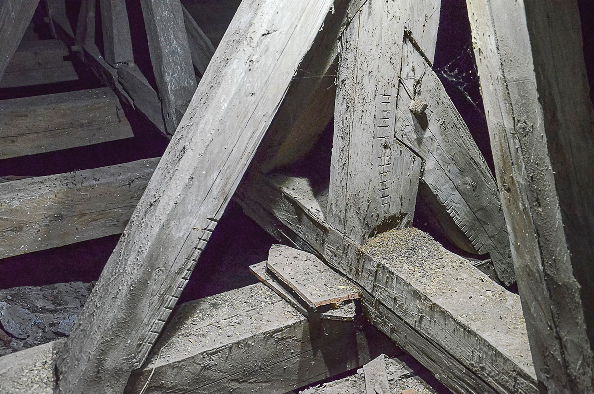 Általános tévhit, hogy a fa hamar tönkremegy, mondja Tóth Boglárka régész, amikor kutatásaikról kérdezzük. Nyilván nem egy kerítés deszkáiról beszélünk, hanem a száraz, jól szellőző, tiszta és védett helyen – például padlásokon – található faelemekről, faszerkezetekről. Az Erdélyben eddig ismert legidősebb tetőszerkezet hétszáz éves, de Európa nyugati részén akár kilencszáz éves fedélszerkezetet is találunk, az viszont ritkaság, hogy egy régióban több ilyen épület is legyen.