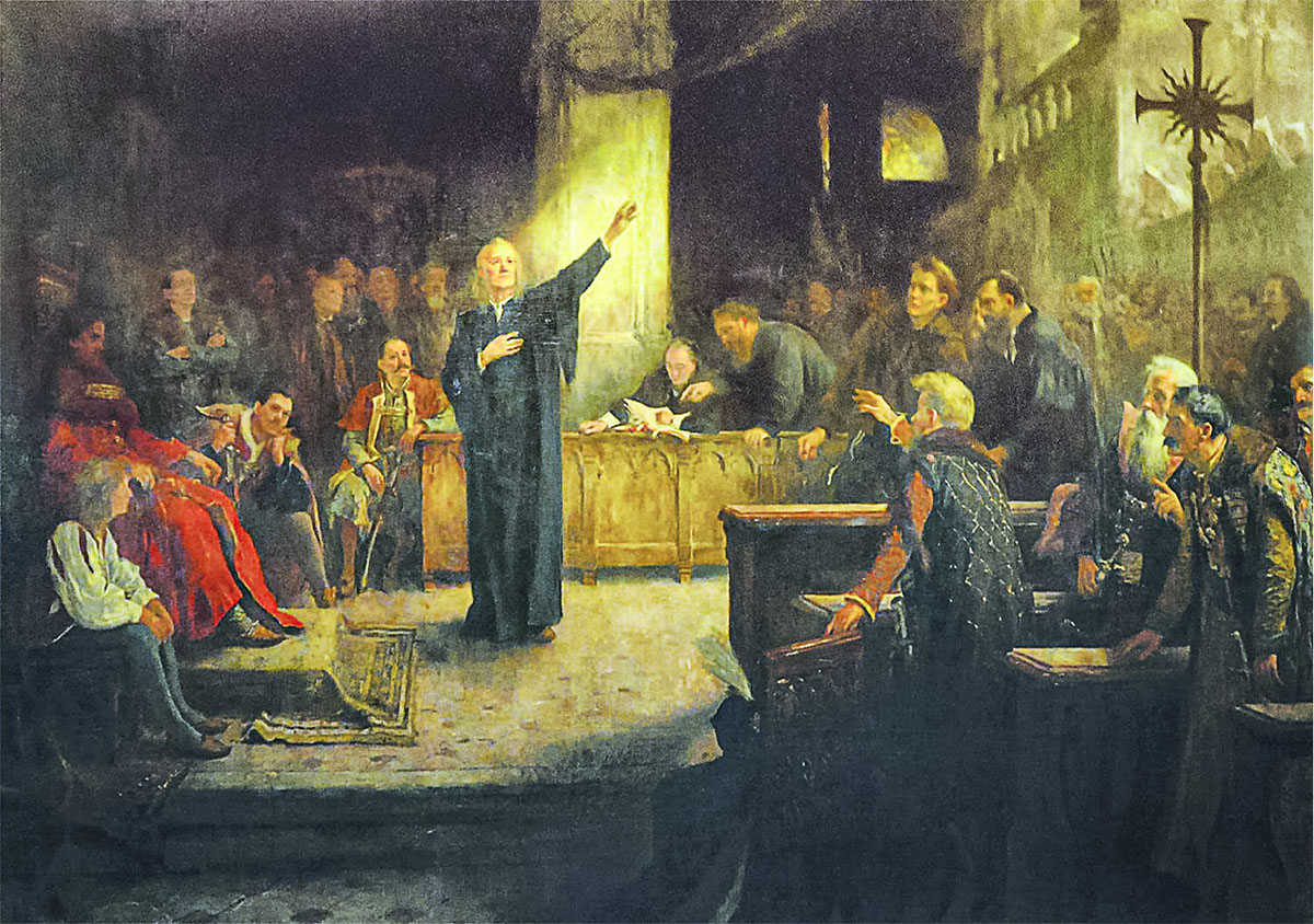 – Ez egy fiktív alkotás, amely nem feltétlenül kapcsolódik a valósághoz. Dávid Ferenc minden bizonnyal nem állt ki és nem hirdette ki ilyen színpadiasan a vallásszabadság törvényét. Az országgyűlés rendjei hozták a törvényt, és minden bizonnyal ők is hirdették ki. Dávid Ferencről egyébként semmilyen képi ábrázolás nem maradt fenn.