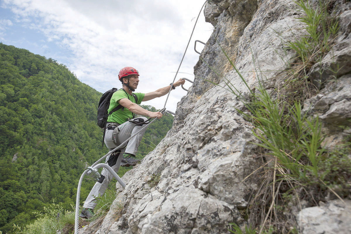Sokaknak a komfortzónából való kilépést, kalandélményt nyújt sziklán mászni egy vasalt utat, mondta Bertóti Zsolt, a csíki hegyimentőcsapat tagja, amikor a megyénkben, illetve a közelben található via ferrata útvonalakról kérdeztük. Mint magyarázta, a via ferrata olyan hegyi, sziklán vezető út, amelyen előzetesen felszerelt létrák, lépcsők, hidak és fémsodronyok segítik az előrehaladást.
