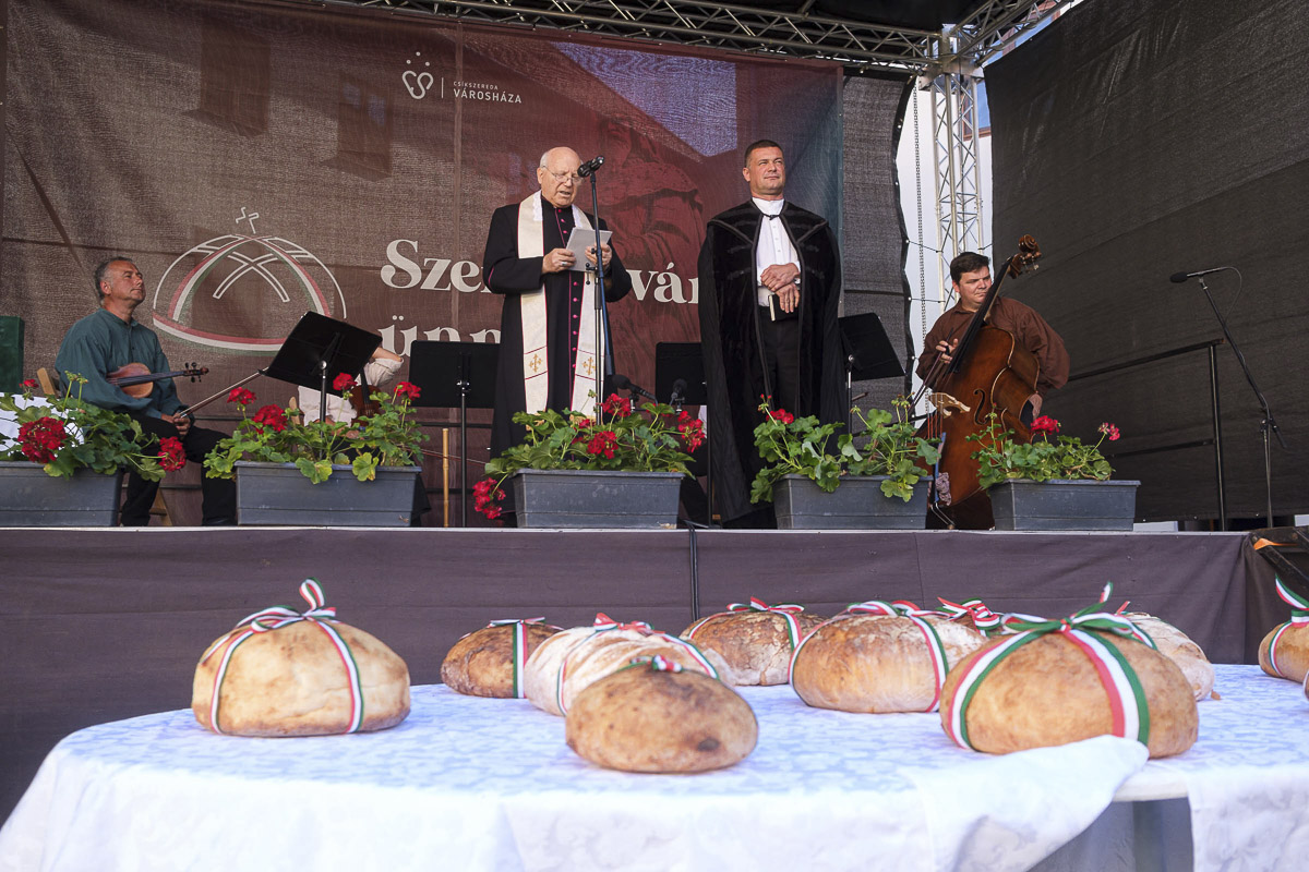 Mivel augusztus 20. az új kenyér ünnepe is, ezért a helyi pékségek által felajánlott kenyereket Tamás József nyugalmazott segédpüspök és Szatmári Szilárd református lelkész áldották meg, majd a megszentelt kenyerekkel a Hargita Székely Néptáncszínház tagjai kínálták meg a közönséget.