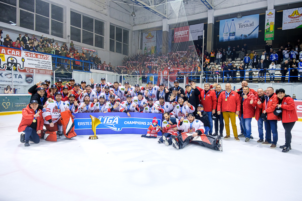 Magabiztos játékkal a Gyergyói HK jégkorongcsapata nyerte a jégkorong Erste Liga döntőjének hatodik mérkőzését a Csíkszeredai Sportklub ellen, így megszerezte történelme második bajnoki címét, idén begyűjtötték a negyedik trófeájukat is.