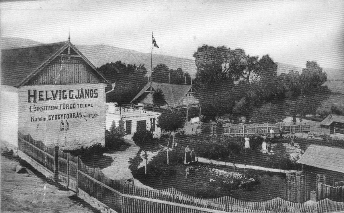 Az említett képen mintegy negyven személy látható, aki a fényképezés alkalmára nem munkás-, hanem ünneplőruhát öltött, ki-ki korsó sört, üveget, poharat tart a kezében. A csoportkép hátterében félkész, ablakok nélküli, félig vakolt épület látszik, közvetlenül mellette állványok vannak, a földön deszkák és lécek hevernek. A megjegyzést aláíró személy, Helvig G. János a szeredai fürdő első ismert tulajdonosa: pékmester volt, Segesvárról költözött Csíkszeredába családjával, és miután megvásárolta a területet – egyes források szerint 36 gazdától –, felújította, bővítette a fürdőt, amelyről korábban Orbán Balázs leírásában a források bő hozamát említi, és azt is, hogy csak Szereda, illetve a szomszéd falvak lakói használják. Később, 1902-ben készült el a Törvényhatósági főorvosi bizonyítvány a forrás vizének összetételéről és gyógyhatásairól: az impozáns rámába foglalt dokumentumot szintén Helvig G. János lánya, Auguszta adományozta a múzeumnak.