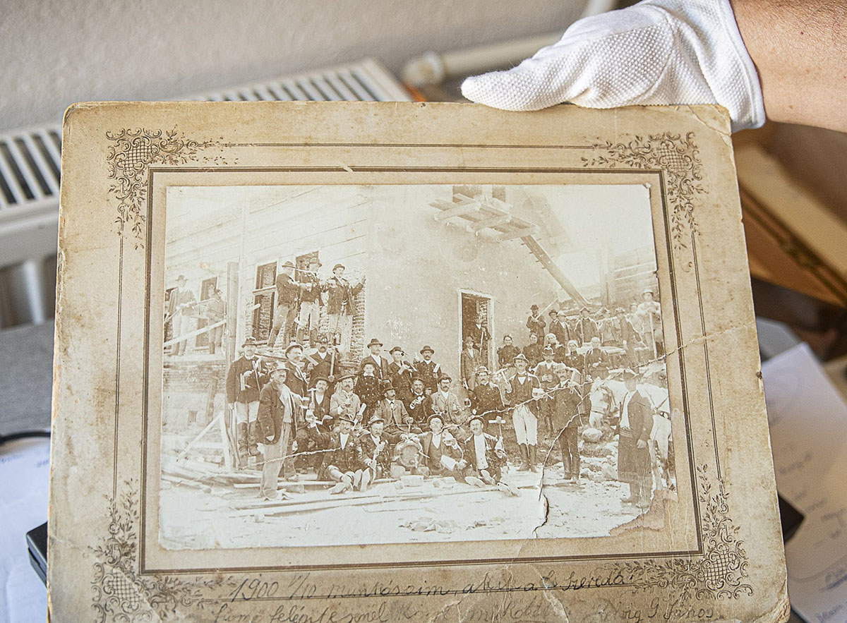 Régi, megbarnult fénykép alatt olvasható a kézzel írt megjegyzés: „1900 V/10. Munkásaim, akik a Szeredai fürdő felépítésénél közre működtek. Helvig G. János”. A fénykép a Csíki Székely Múzeum történelmi gyűjteményét gazdagítja: ezt és a fürdőre vonatkozó más fényképeket, dokumentumokat, amelyeket Helvig G. János lánya, Auguszta adományozott a Csíki Székely Múzeumnak az 1970-es évek végén, Magyari Éva történésszel, gyűjteménykezelővel tekintjük át.
