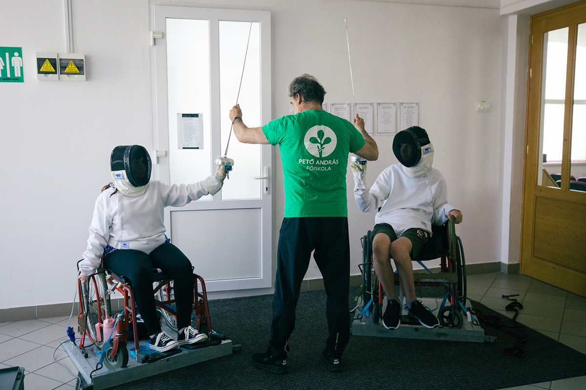 A táborozók közé a kar külhoni szakképzésén részt vevő négy sérült fiatal is érkezett, akitől a táborozók vívást tanulhatnak, ugyanakkor egy speciális evezőgépet is kipróbálhattak. Makk Ádám, a kar vívószakosztályának vezetője szerint nagy lépés olyan szerepben látni a sérült fiatalokat, hogy ezúttal nem ők a tanulók, hanem éppen ők adják át ismereteiket. A paralimpikonok utánpótlására is fontos gondolni Makk szerint, ennek alapjait pedig tevékenységük le tudja fektetni.