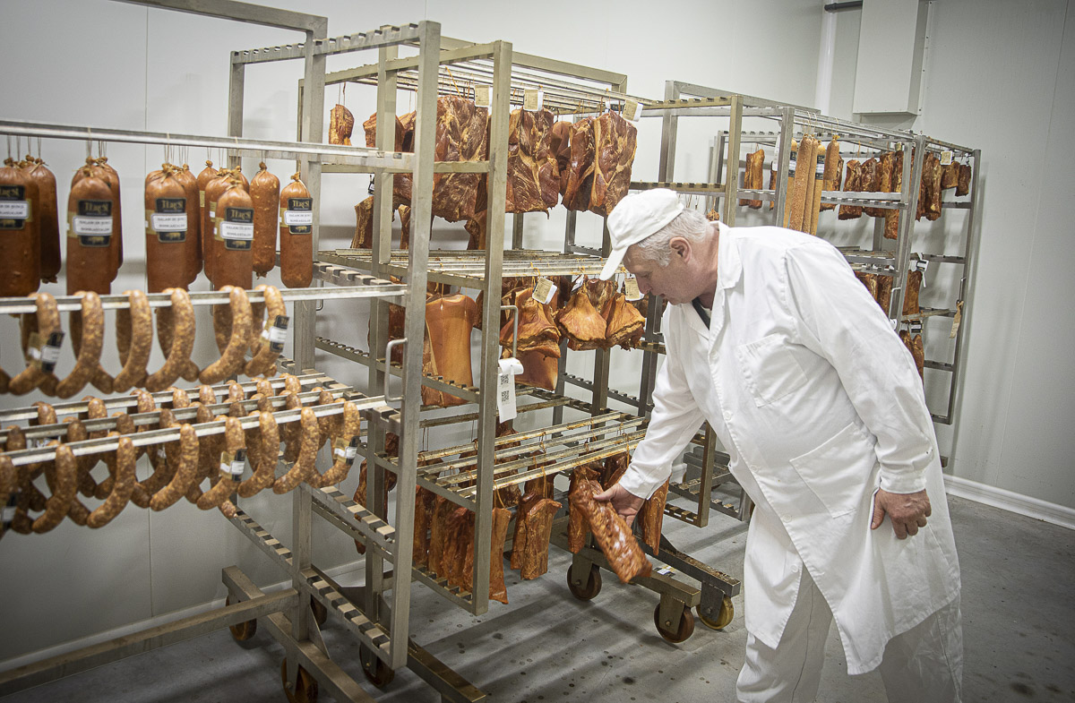 A Tercsi vágóhíd hűtőrészlegén külön világ tárul elénk. Az állványokon kampókra akasztva sorakoznak a különféle sonkák: rondella, kötözött, gyorsérlelt, száraz fehérkaraj, kemencés, kockasonka. Kastal Lajos magabiztos léptekkel vezet a hideg termen, mutat és magyaráz.