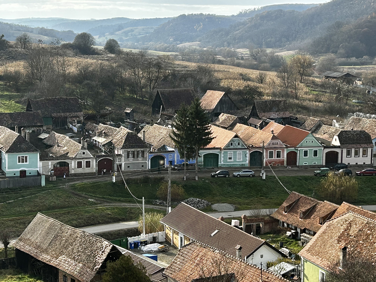 Mielőtt visszatérünk a főútra, tehetünk egy hurkot, amely kilométerben nem sok, és a látvány megéri. Berethalomból Riomfalva felé kanyarodjuk, ahol egy valamivel régebbi, eredetileg ciszterci monostornak épült, gótikus erődített templomot nézhetünk meg. Késő ősszel csak a körbesétálásra volt lehetőség a különleges freskókat is rejtő épület felújítása miatt. Ezen a tájon egyébként majdnem minden a valamikor virágzó bortermelésről szól, csakhogy a szász közösségek által kialakított teraszos oldalak többsége mára elhagyatott… És minden település fölött, mellett emelkedik erőd-