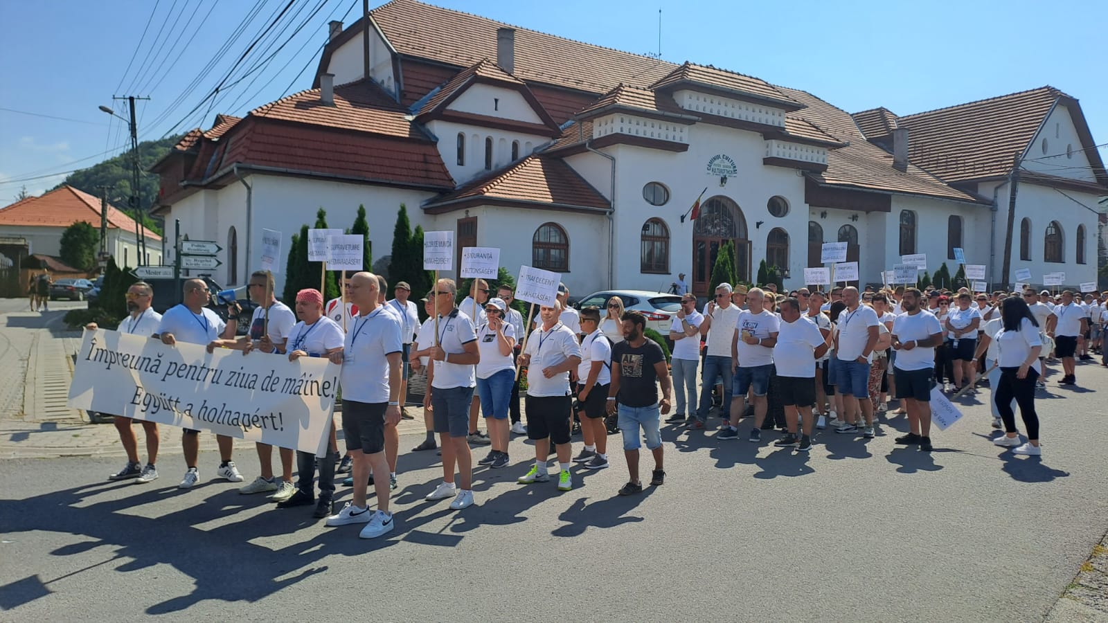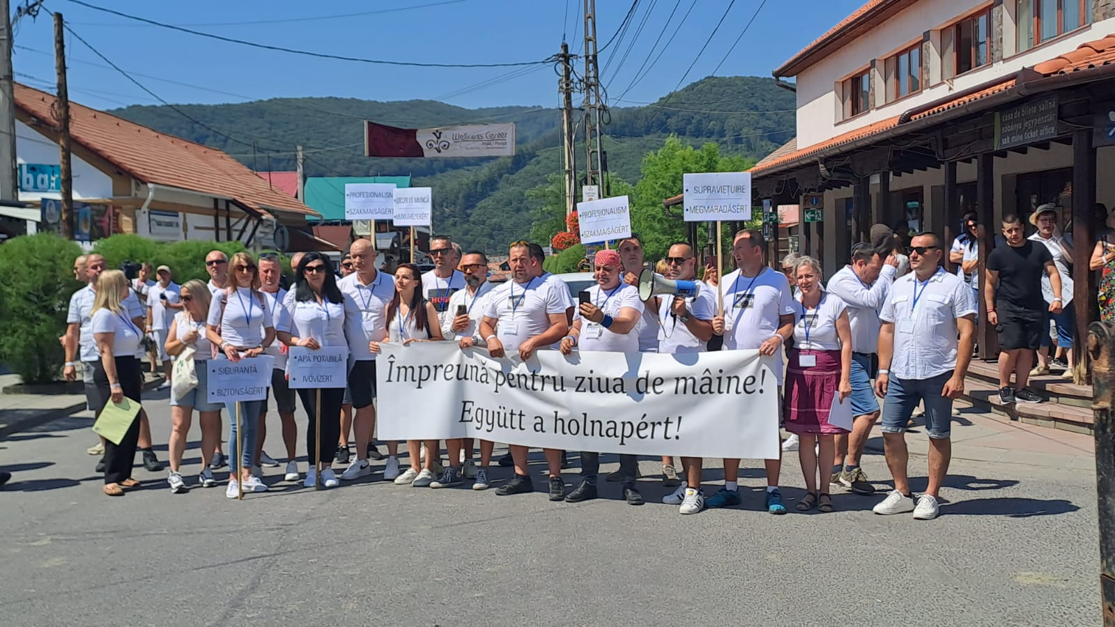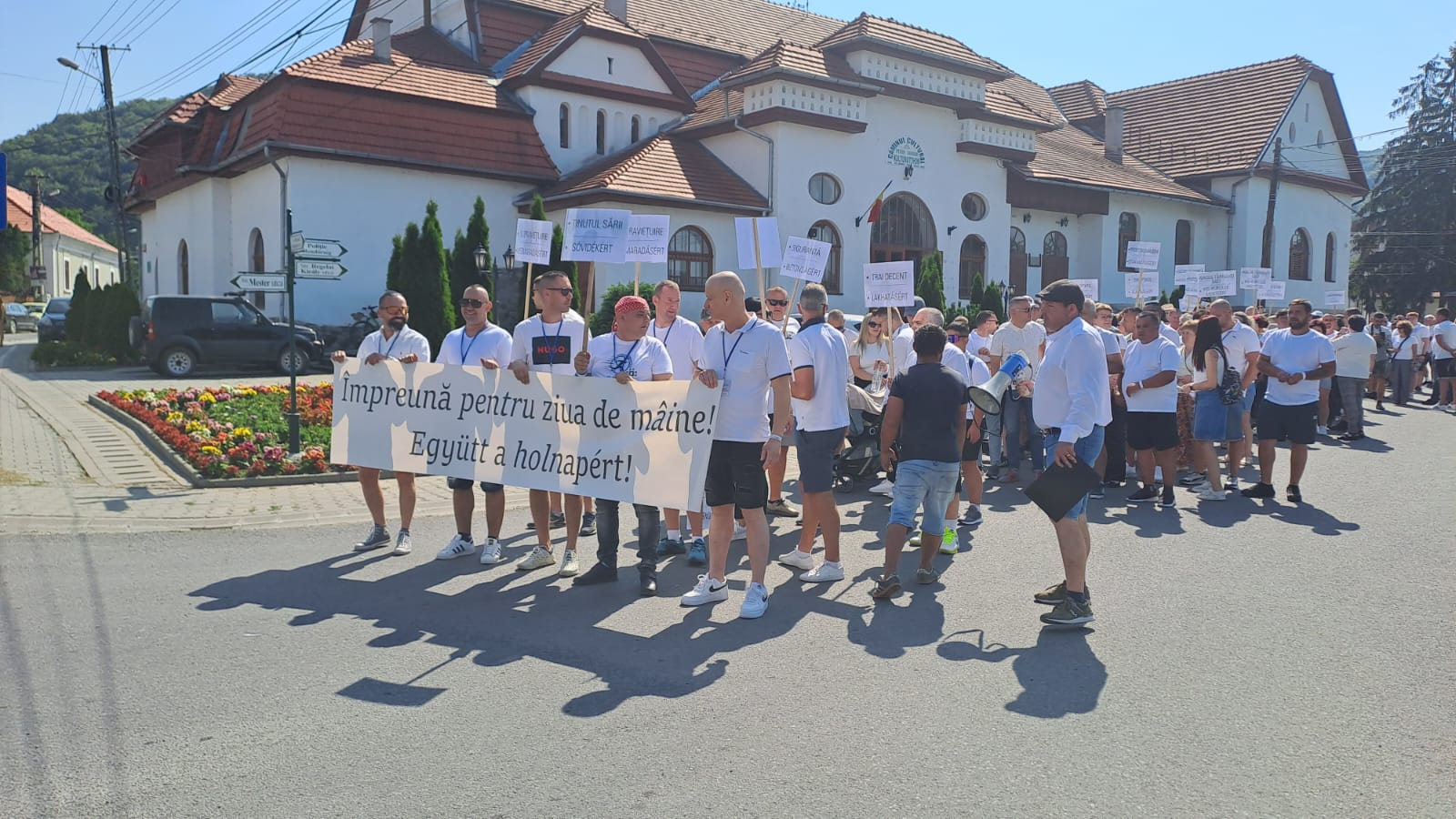 Fehér pólóban gyülekeztek a szombat délelőtt tíz órára meghirdetett békés tüntetésre a parajdiak: a békemenet a sóbánya székházáig vonult fel, ahol helyi vállalkozók, civilek szólaltak fel a bányakatasztrófa óta eltelt időszakkal kapcsolatos elégedetlenségüket kifejezve.