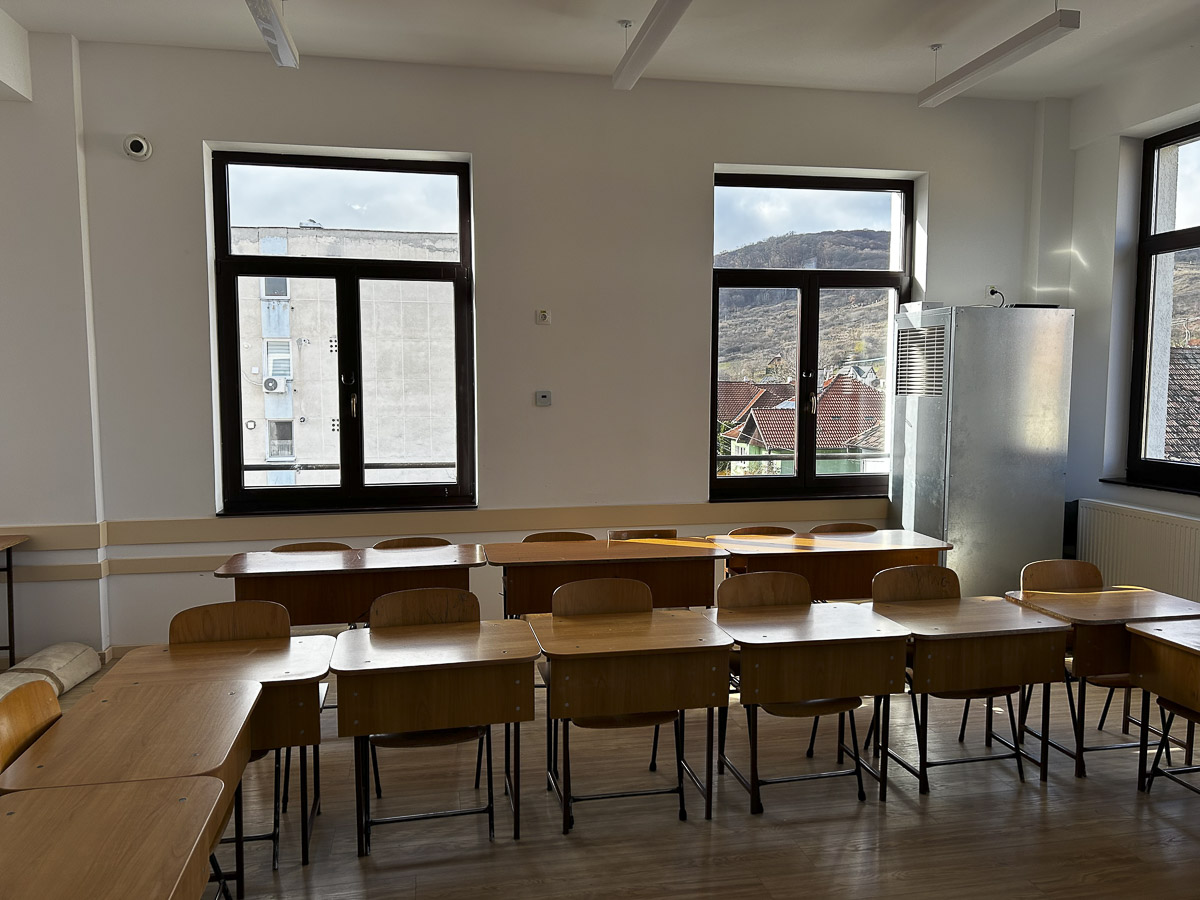 A város szombatfalvi részén található tanintézet a polgármesteri hivatal európai uniós pályázata révén kap kívül-belül új arculatot. A munkát tavaly februárban kezdték el, azóta épült egy új szárny, amely többek között tornatermet és dísztermet is magában foglal, továbbá az épület teljes energetikai és épületgépészeti rehabilitáción, külső és belső felújításon esett át, a korábbi tanév végére a kivitelező már el is készült a felsorolt beavatkozásokkal. A projektnek része a berendezés és az informatikai eszközpark cseréje, korszerűsítése is, ám ez a folyamat akadozott és késett, bár egy tavaly októberi cikkünkben az év végét jelölte meg a hivatal határidőként. Az épületet a régi bútorzattal kellett berendezni, a régi táblákkal, árnyékolók nélkül zajlik az oktatás.