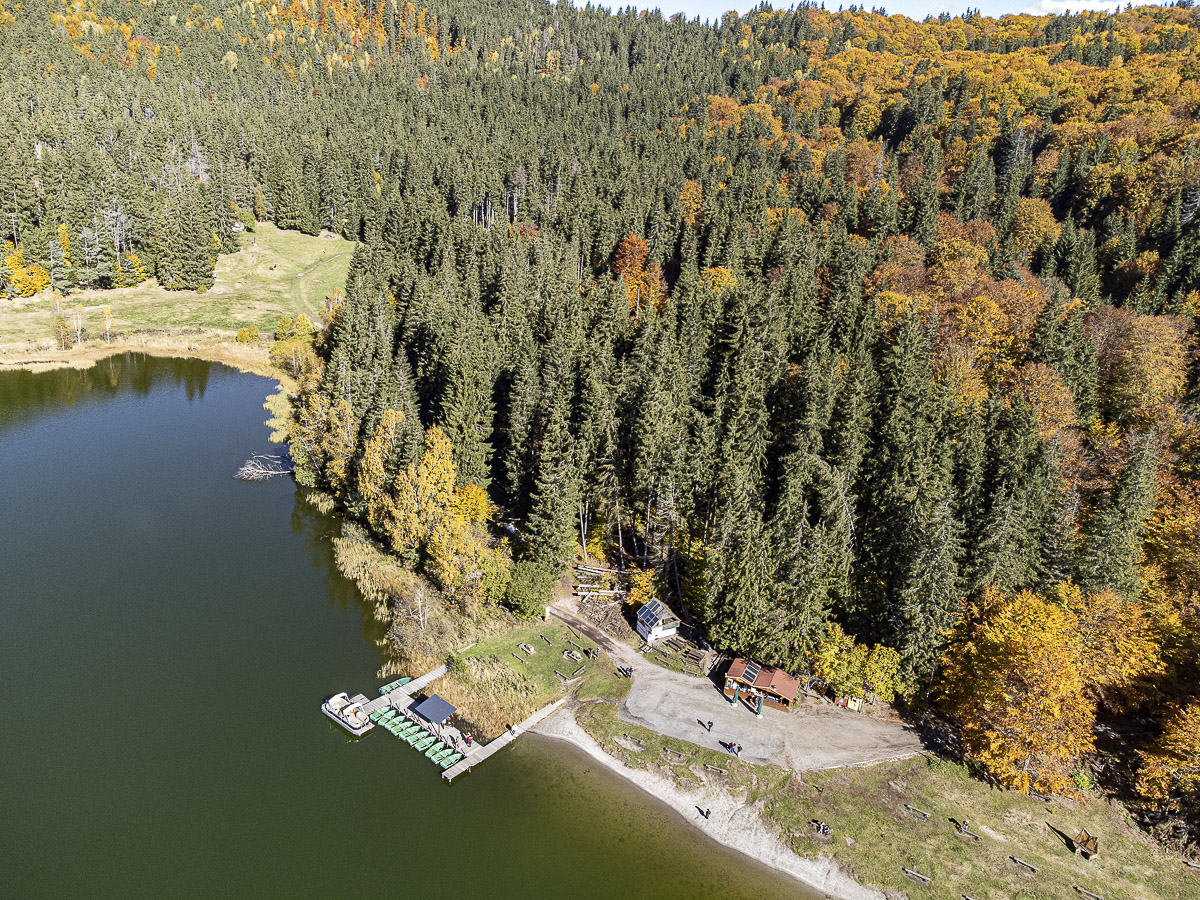 A tóhoz érkezve a víztükör szinte mozdulatlan volt. Ilyenkor az ember óhatatlanul lassabban lélegzik, figyelmesebben hallgat, hátha megszólal a táj. Talán mások is erre figyeltek, illetve a tavon csónakázókra és a fenyvesek közötti lombhullatók aranybarna színbe burkolódzására. Sok fotós ezeket a pillanatokat próbálta megörökíteni, amire a lehetőség adott, a szabályok betartásával.