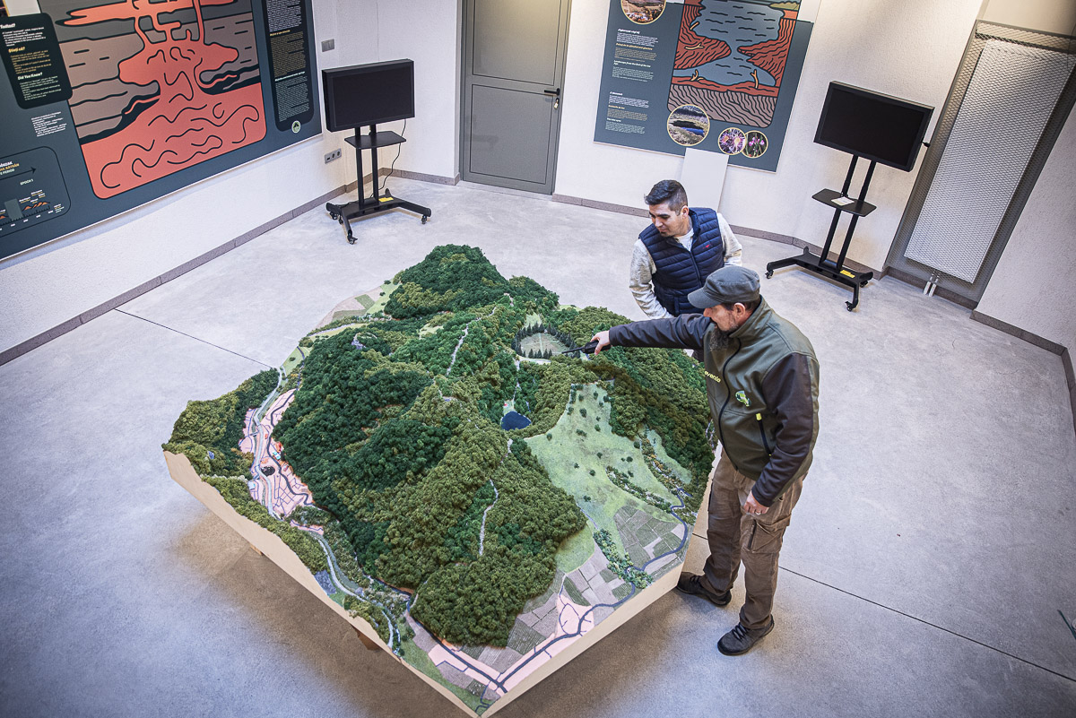 – A Tudásközpont földszintjén egy makett mutatja be a Csomád-vulkán térségét madártávlatból, a falakon elhelyezett pannókon végigkövethető a Szent Anna-tó kialakulásának története és érdekességei. Megismerhető a vulkán szerkezete és kitöréseinek idővonala, valamint a tó, a szomszédos Mohos-tőzegláp és a környék gazdag állat- és növényvilága is – sorolta Dósa Elek-Levente.