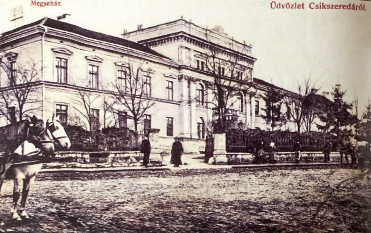 A megyei hivatalokat az egykori csíksomlyói székházból 1879-ben átmenetileg a Mikó-várba költöztették, de a városnak szüksége volt egy, a rangjának megfelelő középületre, és ezt az 1880-as évek derekán már nem lehetett tovább elodázni – írja Vofkori György Csíkszereda és Csíksomlyó képes története című könyvében. A Vármegyeház – a mai városháza – felépítésére a megyei törvényhatósági bizottság 1884. július 29-én alakított építtető bizottságot, amely már augusztusban tartott ülésén ajánlotta, hogy az „(…) új megyeház a várkastéllyal szemben lévő két földszinti lakás helyére építtessék”.