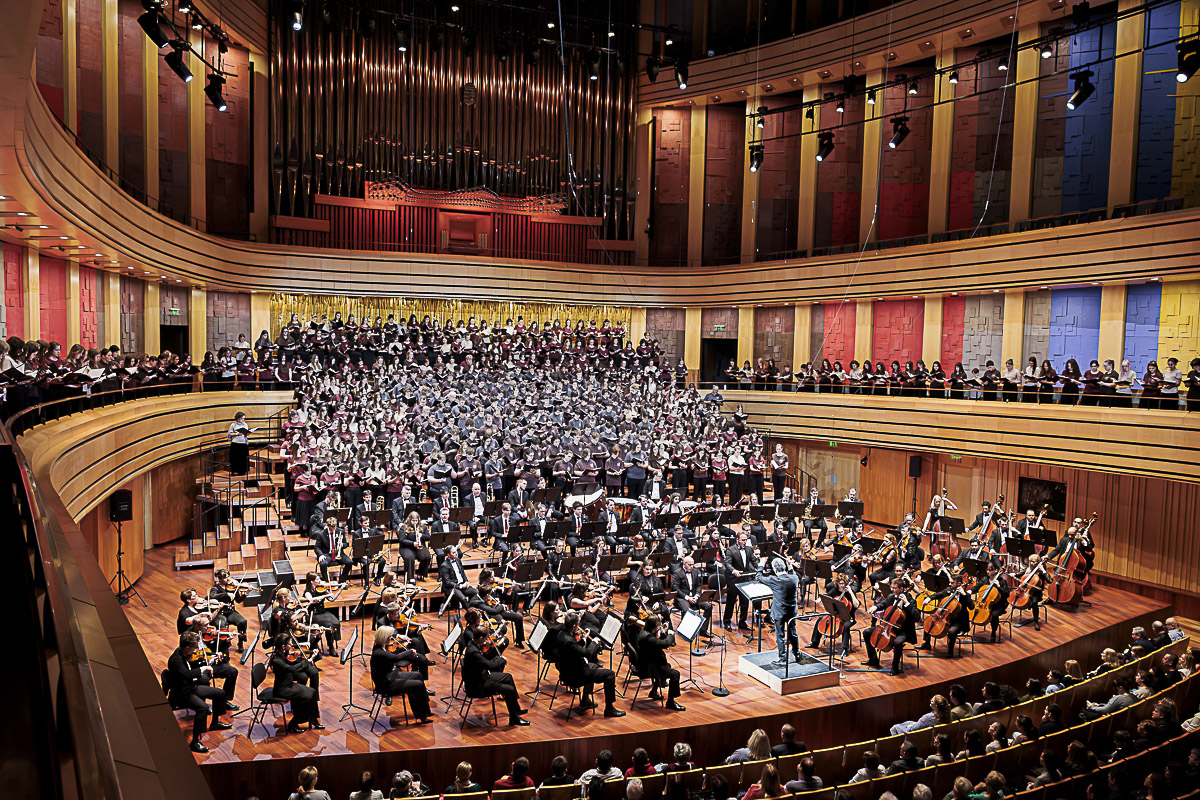 A Müpában a Budafoki Dohnányi Zenekar A jövő hangjai elnevezésű programjának lehettem részese. A kezdeményezés több évtizedig ért Hollerung Gábor karnagy, a zenekar ügyvezető igazgatójának szívében, s az elmúlt évben egy szuperprodukció, Carl Orff Carmina Burana című művében öltött testet. A darabot gyakran előadják, de félezer fiatal szerepeltetése igazi nóvumnak számított a magyar zenei életben.