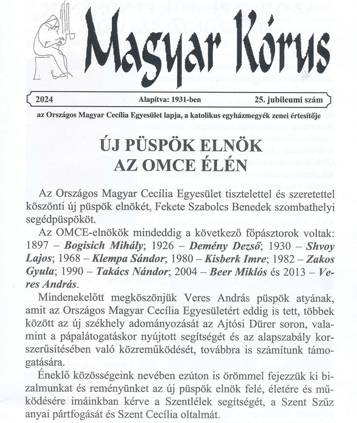 A Magyar Kórus által megteremtett ízlés, gondolkodás szellemében nevelkedtem én is, nagyon sok cikket olvastam a régi számokból, s a kottamellékleteket is használtam. Amikor 1999-ben az Országos Magyar Cecília Egyesület központi igazgatója lettem, elérkezettnek láttam az időt, hogy a Magyar Kórust az Egyesület egyházzenei folyóirataként újraindítsuk. Vázoltam tervemet Takáts Nándor püspök úrnak, az OMCE püspök-elnökének, illetve társelnökének Tardy László karnagynak, akik támogatták kezdeményezésemet. Felvetődött, hogy más címet adjunk neki, én viszont nagyon határozottan kértem, hogy az új periodika, a Magyar Kórusnak legyen jogfolytonos utódja. A koncepcióm szerint a kottamelléklet gyakorlatát – főleg a gregorián és a klasszikus polifónia anyagából, de új kortárs kompozíciókból is – megőrizzük. Célom a tájékoztatás, az egyházzenei ismeretterjesztés, s nem utolsósorban a cecíliánus szemléletmódnak az életben tartása, gondozása, a cecíliás lelkület ápolása volt. A tizenkét egyházmegye zeneigazgatóival is megosztottam tervemet, s kértem, hogy rendszeresen küldjék meg híranyagaikat. Annak idején az egykori Magyar Kórus évente négyszer jelent meg, gazdasági okok miatt az új kiadványt jelenleg évente egyszer tudjuk közreadni mintegy ezerötszáz példányban. Lehet, hogy ez a szám kevésnek hangzik, de a folyóiratot az Országos Magyar Cecília Egyesület tagjai sorában többek között püspökök, papok, karnagyok, kántorok, kórustagok és iskolai énektanárok kapják meg postán. Szinte teljes a kör, hiszen főként ők azok, akik gyakorlati egyházzenei szolgálatot végeznek, vagy a szolgálathoz kötődésük van.