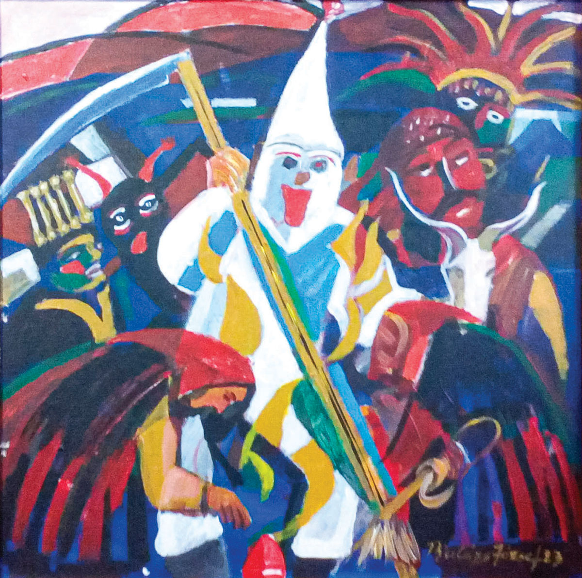 Csakhogy az, aki a szőttes szoknya színeit üzenetnek is szánja, aligha tér le eddigi útjáról. Ezen az úton pedig meghatározó szerep jut az arcképfestésnek is. Teljesen mindegy, hogy milyen technikát alkalmaz, arcképeiről szinte kiáltva üzen az a tisztelet és szeretet, amit az általa oly nagyra becsültekről vászonra, kartonra, fára, papírra ment. Szénnel, tussal, krétával, olajjal… sőt, akkor is, ha linóleum-, illetve fametszet levonata őrzi majd a kiválasztottat.