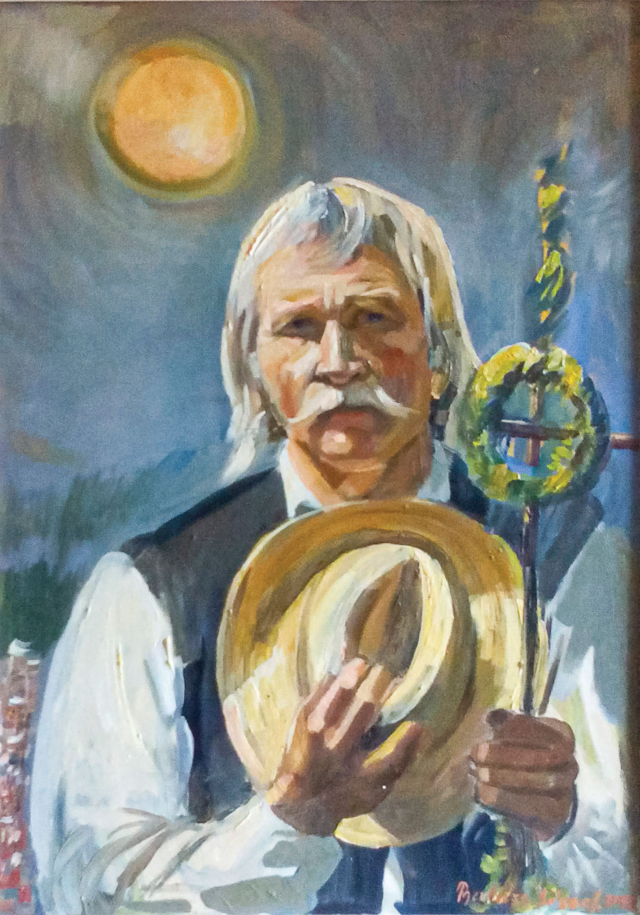 – Azt kérdezték tőlem, hogy mikor érzem magamat a legboldogabbnak. Vagy boldognak. Valahogy így kérdezték. Ezen kellett elgondolkozzak. Az jutott eszembe, hogy én akkor érzem tényleg olyan boldognak és olyan feltétel nélküli boldognak, amikor a nemzetemet táncolni és mulatni látom népviseletben. Akkor úgy érzem, hogy ez valami olyan igazság, olyan érték, amiben nem fogok csalódni. Mert az ember lehet boldog. Szerelemtől, mit tudom én, minden mástól, de abban benne van mindig a csalódás lehetősége. De az, amikor táncolni láttam, vagy látom, vagy a közepében vagyok egy ilyen nagy ünnepnek, amikor a lányok rokolyákban, a fiúk harisnyában ropják, az a legfelemelőbb érzés. Akkor elképzeltem, hogy ha festményeimet kirakom egy kiállításon, és azt a hangulatot sugallják, sugározzák, mint egy ilyen nemzeti viseletbe öltözött ünneplő közösség, hát akkor az már önmagában megérte valakinek, hogy bejöjjön a kiállításra. A lényeg: azon festményeim között érzem igazán jól magamat, amelyeket ilyen színekben festettem.