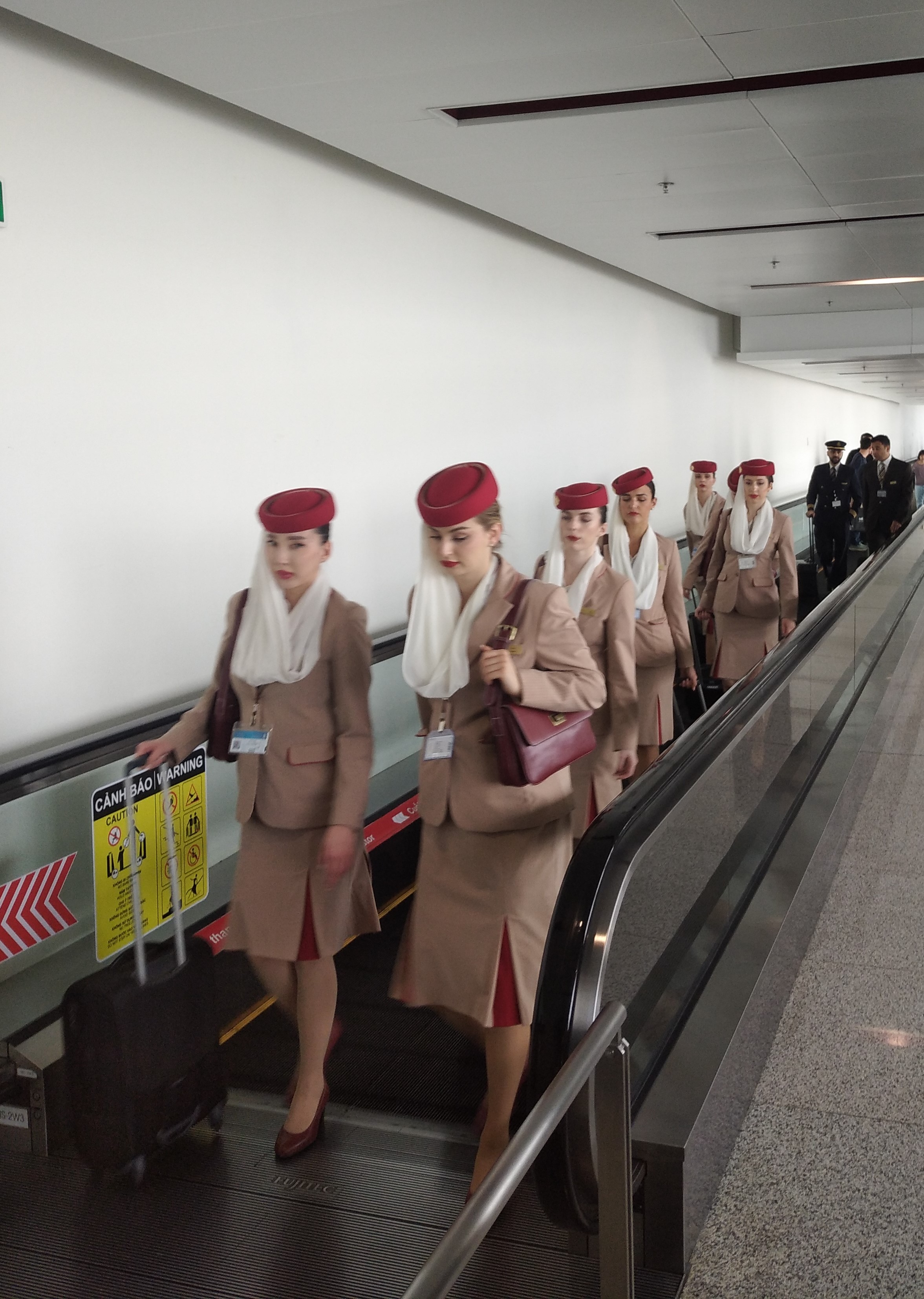 Egy távoli útba belevágva magam is találkozhattam velük munka közben. A járatunkon nagyon lelkes légikisasszonyok szolgálták ki az utasokat, pezsgett a kezük alatt a munka. Mindenkihez volt egy kedves mosolyuk, ha volt valami extra kívánságunk, azonnal odajöttek. Azért, hogy agyonüssük az időt, a filmkínálatból böngésztünk néznivalót. Két magyar nyelvű mozi is szerepelt a listán. Magyarul is bemondták a legfontosabb információkat, később kiderült, hogy két honfitársunk is a légikísérők között dolgozott. Érdeklődésemre az egyikük elmondta, hogy a mintegy harmincezer (!) alkalmazottból hatvan magyar is munkát talált az illusztris társaságnál. Mindezt egy kedves mosollyal adta tudtomra.