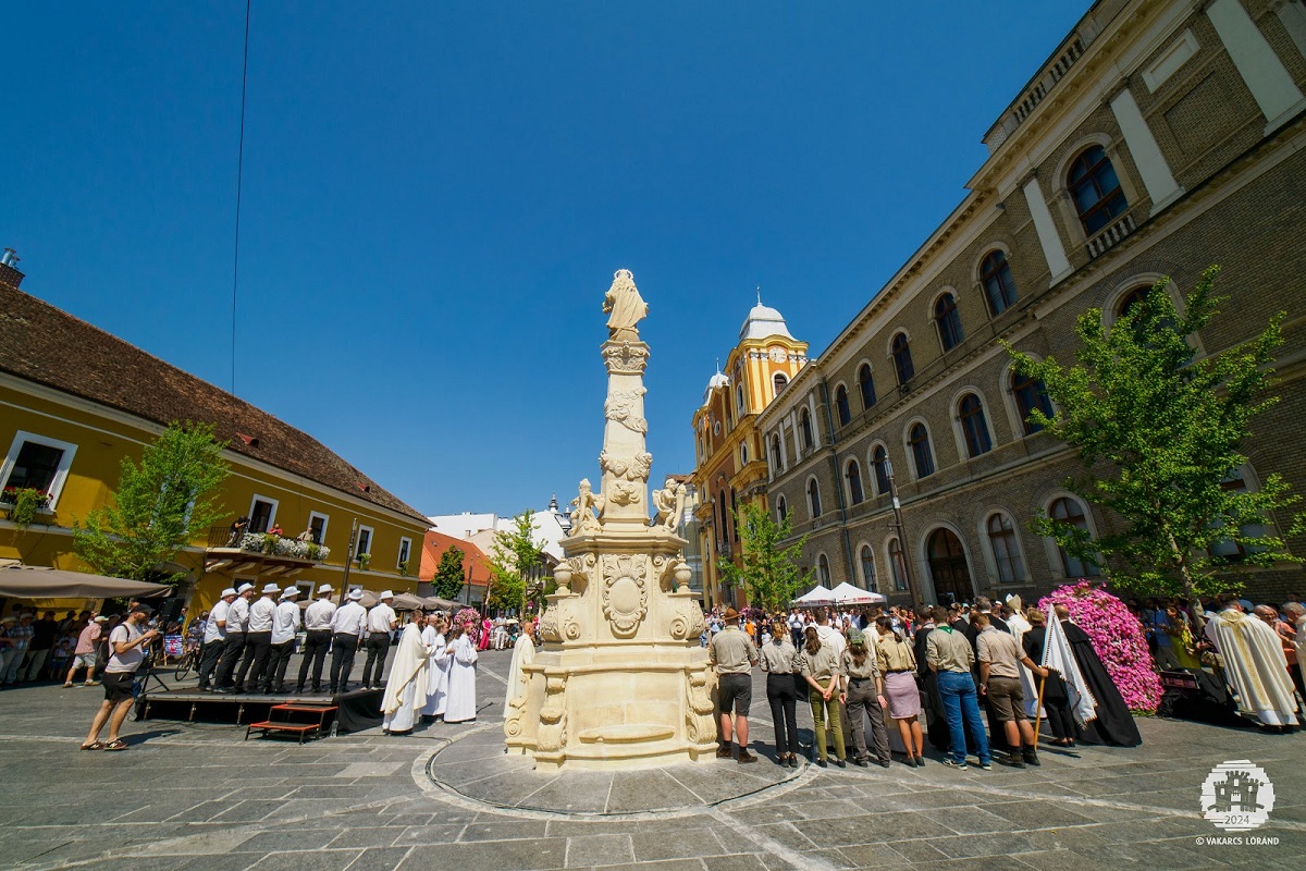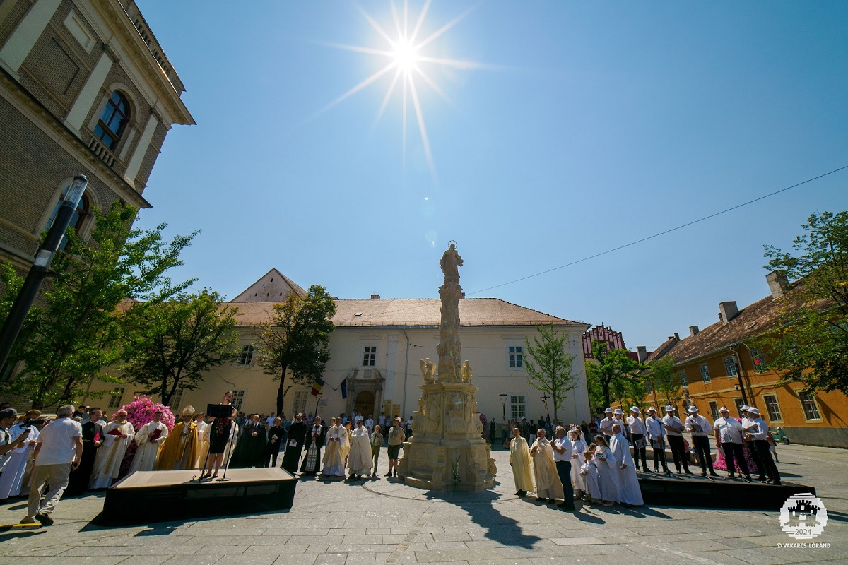 Felszentelték és megáldották a Kolozsvár belvárosába visszaállított Mária-oszlopot