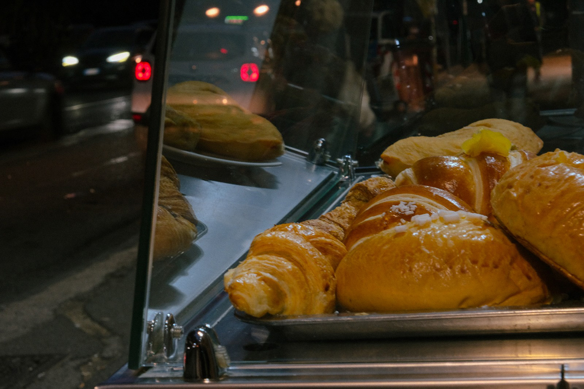Később elosztunk egy nápolyi sfogliatellát, ami ricottával töltött péksütemény, és egy mandulás tarallit séta közben. Az esti város méhrajként nyüzsög és zajong még ezen a csendesnek mondott környéken is, de az állandó robogózaj, duda és gyermekkurjongatások közepette nyugodtan éli világát minden helyi ember.