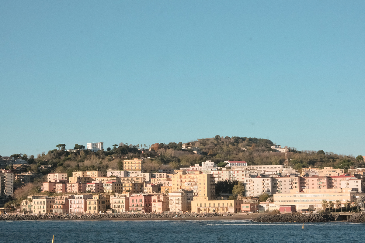 A napnak örvendezve egy barátnőmmel spontán kalandra indulunk Bagnoliba. A városrész félórás vonatút a központtól, és a Flegrei-mezőkre épült, amely egy kalderákból, kráterszerű képződményekből álló, kiterjedt terület a régióban. Többek között a Solfatara nevű alvó vulkáni kúpot is magában foglalja. Egy itt élő barátnőm szerint szinte mindennaposak a kisebb-nagyobb talajcsuszamlások, a hegy lábára épített házakat évente legalább egyszer renoválni kell. Motorossisakkal és jól felszerelt hátizsákkal az ágya alatt alszik. Mindenki folyamatos készenlétben áll egy esetleges evakuálásra. Az ókori rómaiak ezt a helyet tartották Vulcanus, az istenek kovácsa lakhelyének.