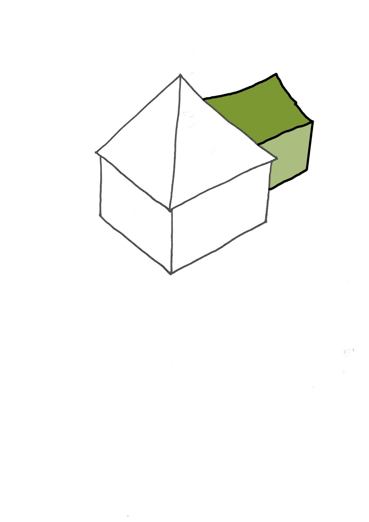 Az adottságokra építő kiegészítés során a tulajdonos a telek épületeit – jellegük megőrzésével – meghagyja, a lakóházban kis beavatkozásokkal teremt magasabb komfortszintet a terek minimális módosításával, a ház formájának megtartásával és a tetőszerkezethez való alkalmazkodással a tetőteret is használja, gondosan megválasztott tetőablakkal. A tornácot nyitva hagyja, a csűrnek is funkciót keres, például beállógarázsnak használja.