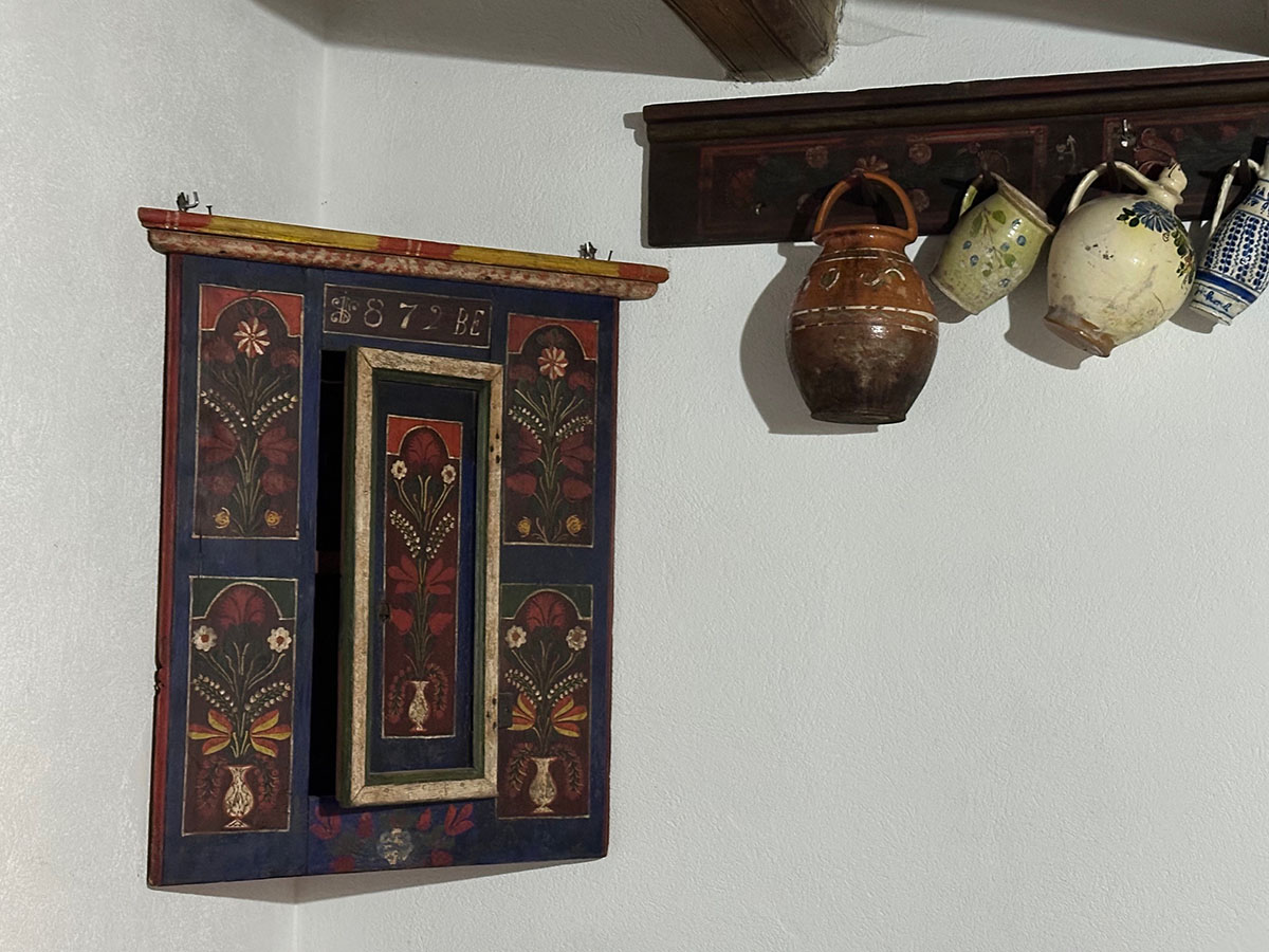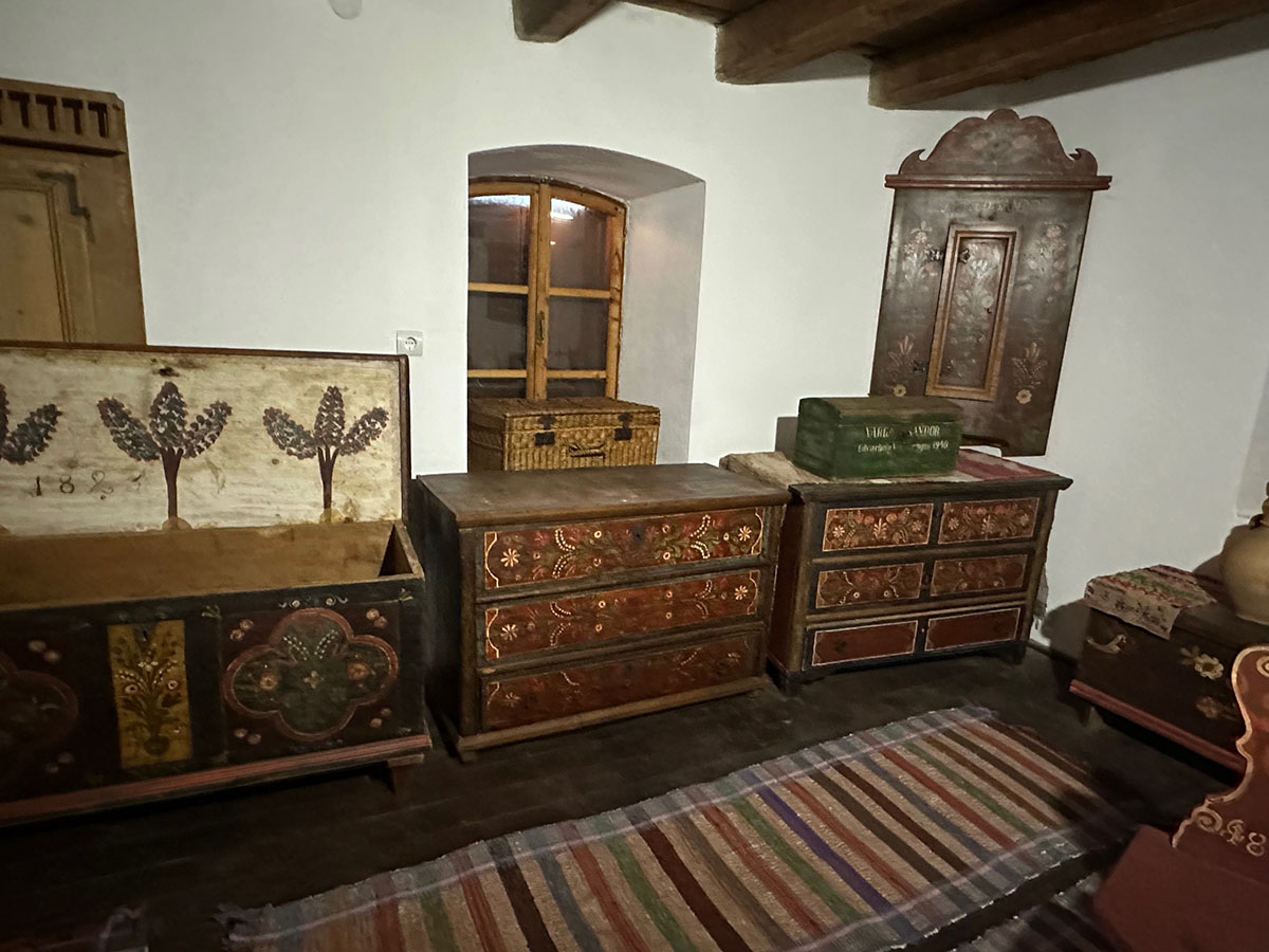 A Geréd-ház belső tereiben a múlt színes motívumokban él tovább. Az egyik szobában 1804-es hozományos láda áll, mellette 1853-as vargyasi darab, amelyet Sütő István készített. „Összesen húsz festett ládám van, többségüket restauráltattam” – mondja a ház gazdája.