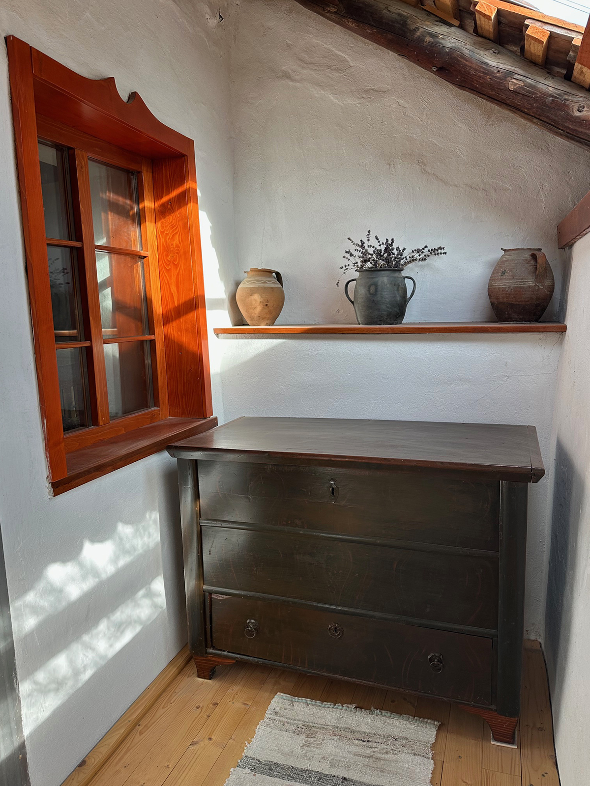 Az abásfalvi ház 1902 körül épülhetett, Jolánka apai nagyapja, Szőcs Lajos építette. A ház nem csupán kő és gerenda: a stafírung, a vetett ágy tizenkét párnával, a kézzel varrott abroszok, falvédők, ágyterítők mind-mind családi kincs, átmentett örökség.
