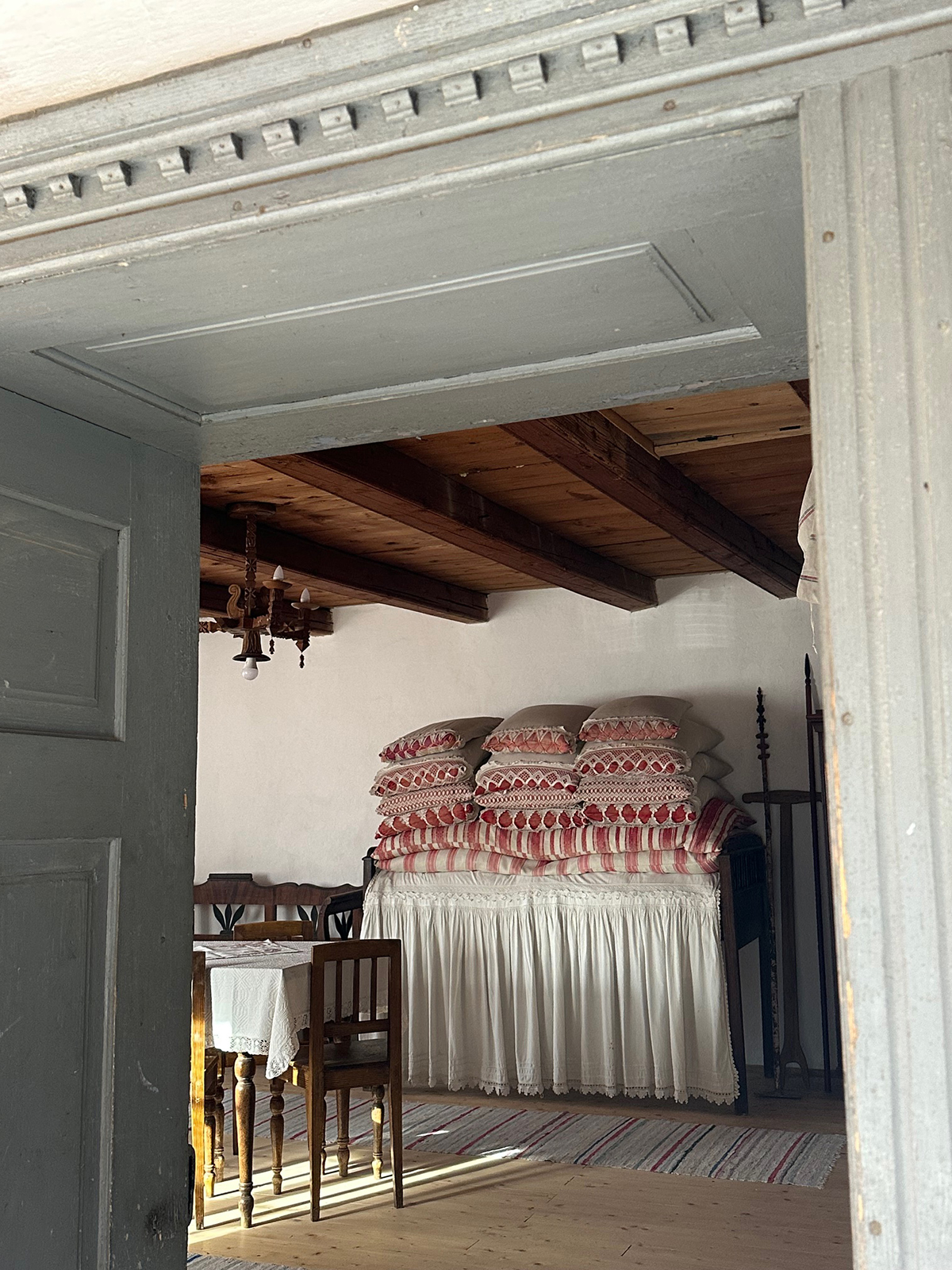 – Édesanyámtól maradt a vetett ágy, amelyen tizenkét párna van… Az ágyterítők, abroszok, falvédők, ágyneműk mind ki voltak varrva, csipkével beszegve. Ezek egy részét ma is őrizzük.