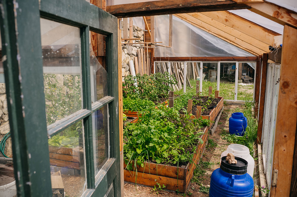 Azt mindketten büszkén mesélik s később meg is mutatják, hogy van kis melegházuk, ahol megterem a paradicsom – nagy reményeket fűznek hozzá a háziak –, illetve szabadföldben is termesztenek zöldséget, amit a ház asszonya különböző módszerekkel tartósít. Az esővizet felfogják, abból locsolnak. Az önellátás mint fogalom jól hangzik, ők ettől még messze állnak – mondják –, de nem is föltétlenül ez az irány, amire törekszenek. Tény, hogy ritkán fordulnak meg a boltokban, igyekeznek saját maguk által megtermelt, szezonális alapanyagokat fogyasztani, ami pedig a kapun belül nem terem meg, azt a falubeliektől beszerzik. Elismerik, alaposan megváltoztak bevásárlási szokásaik, főként, ami az ellátást, az élelmezést illeti, igaz, az igényeiket is csökkentették.