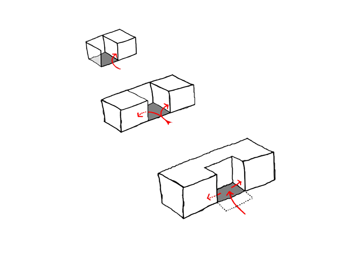 A ház szükség szerint bővíthető, nagyjából hasonló nagyságú elemekkel, ezért a telken úgy helyezkedik el, hogy ez a bővítés lehetővé váljon. Legcélszerűbb – és a fésűs telekszerkezet esetében általános – elhelyezése az egyik oldalsó telekhatárra/csepegőre való telepítése, úgy, hogy a tetőről lecsepegő/lefolyó víz a telekhatárra essen. A toldások során legtöbbször hátrafelé bővítették az épületet újabb és újabb szobákkal, kamrákkal. De a rendelkezésre álló hosszú faanyag lehetővé tette a széltében való, kéttraktusos bővítést is, ha a helyzet úgy követelte és hátrafelé már nem volt hely, vagy a bővítés így jobb benapozású lett – és ez a nagy fokú alaprajzi rugalmasság a székely ház egyik jellemzője.