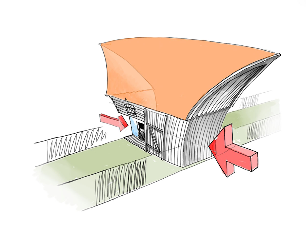 A csűr elhelyezése egy nagyon fontos szempontot vesz figyelembe: a szénásszekérrel való legkönnyebb megközelítés határozza meg a csűr telkeken belüli elhelyezkedését. Így lesz a csűr az utcával párhuzamos, kivéve az udvarok/udvarterek és a szabad elrendezésű hegyi telkek esetében. Az első esetben csak így lehet őket a telken jól elhelyezni, a második esetben pedig annyi földterület áll rendelkezésre, amennyire szükség van. A legkönnyebb megközelíthetőség teszi a szűk völgyek fordított telkeinél, hogy a csűr az út mellett van, és a házak a dombra húzódnak fel, mivel a szűk völgyben nincs helyük. A fordított telkeken így elkerülhető a „nehéz” hegymászás a szénásszekérrel. Ez a logika tulajdonképpen megmagyarázza a fordított telekhasználatot.