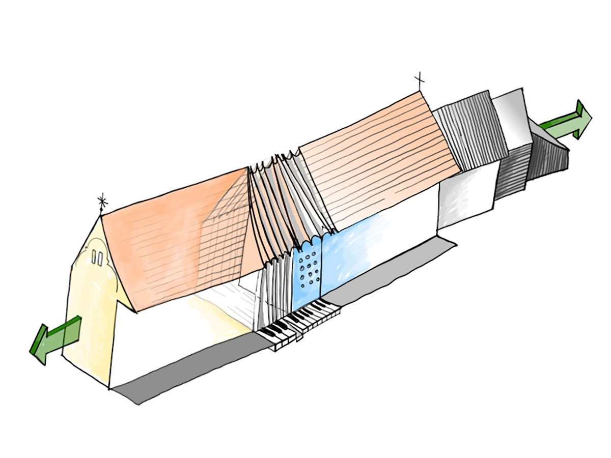 Az istállóval kombinált csűr mindig egy zárt rendszer. A fésűs telekszerkezet esetében a gazdasági udvart lezáró csűr a telken keresztben helyezkedik el, így már nem bővíthető hasonló volumenű tömeggel, csak kisebb, a tető alá bebújó toldásokkal, és csak addig, amíg az ember be nem veri a fejét a toldott tető alsó vonalába.