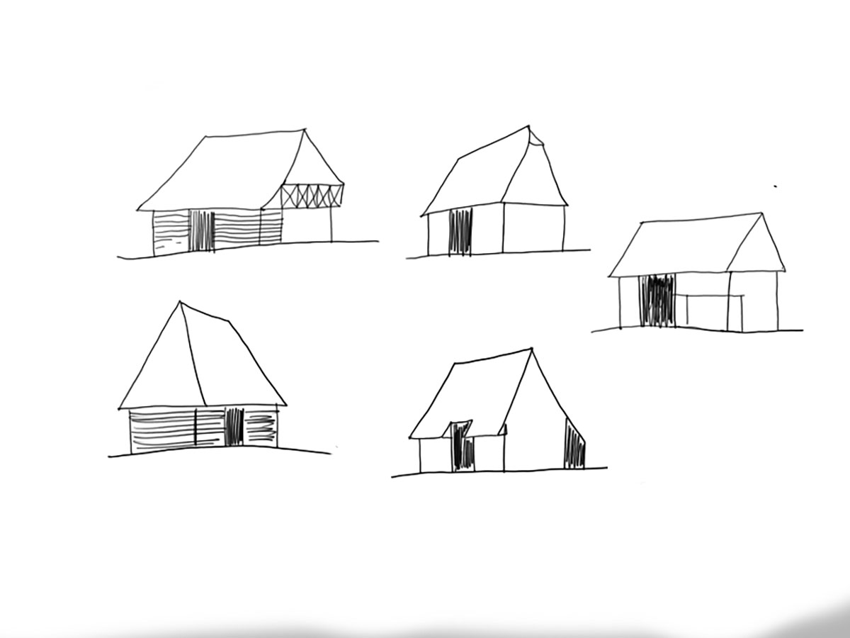 Az általában az istállót magában foglaló csűr tömege egyszerű, beosztása jól meghatározott, és nem követi annyira gyorsan a divatot, mint a házak. De a csűr a gazdaság alapja, amelynek méretét a mezőgazdaság/erdőkitermelés számára elengedhetetlen nagy testű állatok (lovak, szarvasmarhák) átlagos száma határoz meg. Ez a szám lehet akár négy-hat szarvasmarha és egy pár ló, vagy akár több is – ilyenkor, a nagy létszám miatt kezdődnek az érdekes elrendezések a telken, például amikor a telken hátrafelé két rend csűr is előfordul.