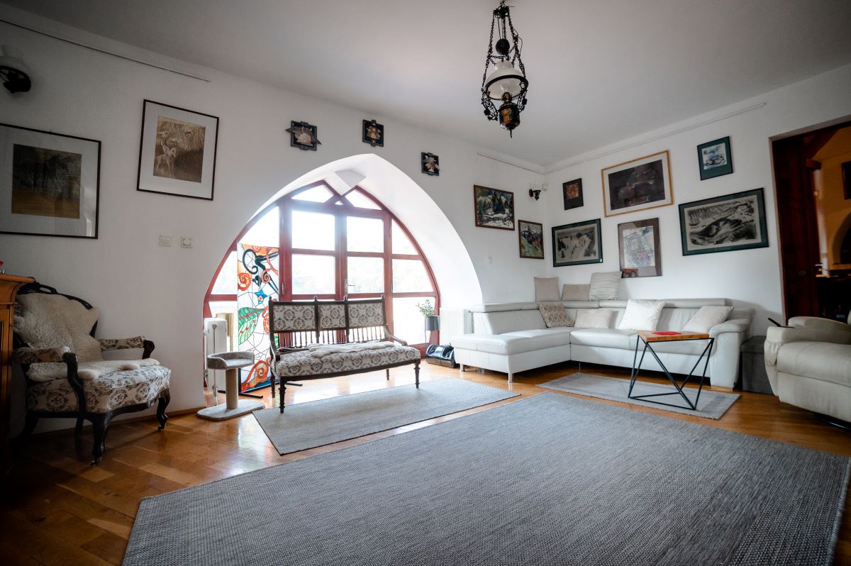 Az íves ablakok láttán az erre járók közül sokan érdeklődtek, hogy vajon templom épül itt? – mesélik nevetve a háziak. Szász Marika és férje, István készségesen vezet körbe a háromszintes családi házban, miközben büszkén mesél arról a tervezési, építkezési folyamatról, amelynek köszönhetően igazán mély barátság alakult ki köztük és Heil Tibor építész-tervező között.