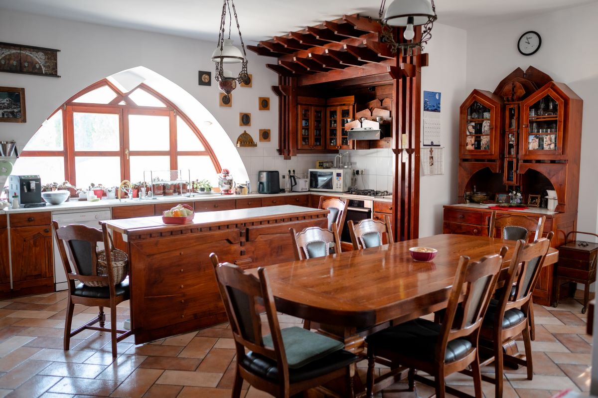 – Háromféle elképzelés is volt arról, hogy milyen legyen a ház. A férjem, István abban az időben Magyarországon együtt dolgozott építkezési magánvállalkozóként Tiborral, a tervezővel, akinek sírva vittem a látványterveket, hogy segítsen, de ő azt mondta, hogy másnak a tervébe nem szól bele. Azt hiszem, megsajnált, mert eljött egyszer ide, leültünk egy nagy kőre, majd egy kockás papíron lerajzolgattuk, hogy miként szeretném például a konyhát, hogy hol legyen a kályha, a sütő. Így indult. A tervek elkészülése mellett az egyik legszebb dolog, hogy Tibor, akit sajnos már nagyon fiatalon elveszítettünk, számunkra olyan lett, mint egy családtag. Szívvel-lélekkel mellénk állt, minden elképzelésünket, elvárásunkat meg tudtuk beszélni vele. Nagyon gazdag lennék, ha annyi pénzem lenne, ahány fotó készült az évek alatt erről a házról. Olyan is volt, hogy kérték, engedjük meg, hogy nézzenek szét, és mi mindenkinek megmutattuk, aki kíváncsi volt rá – meséli Marika.
