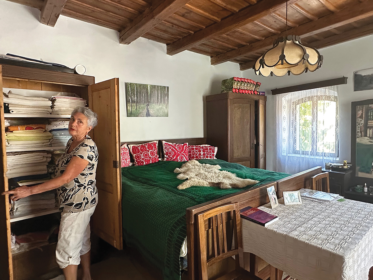 – Összehoztam a régi tárgyakkal a mai igényeket. Megőrizve azt a kort, de a mostani életszükségleteknek megfelelően, hiszen nagyon sok barátot fogadok, és fontos volt, hogy a hely alkalmas legyen erre. Vendégházat nem szeretnék működtetni, mert nincs elég energiám hozzá, a pénz pedig nem motivál, viszont aki ezzel foglalkozik, minden elismerésem. Annak idején a faluban minden nő és férfi iparművész volt, de már csak négyen tudnak szőni, az én generációmból ketten. Az én utam más, bennem inkább az munkál, hogy a közeli és messze élő barátaimmal beszélgessek, ebbe fektessek energiát – jelenti ki a pozitív életszemlélettel és optimizmussal megáldott házigazda.