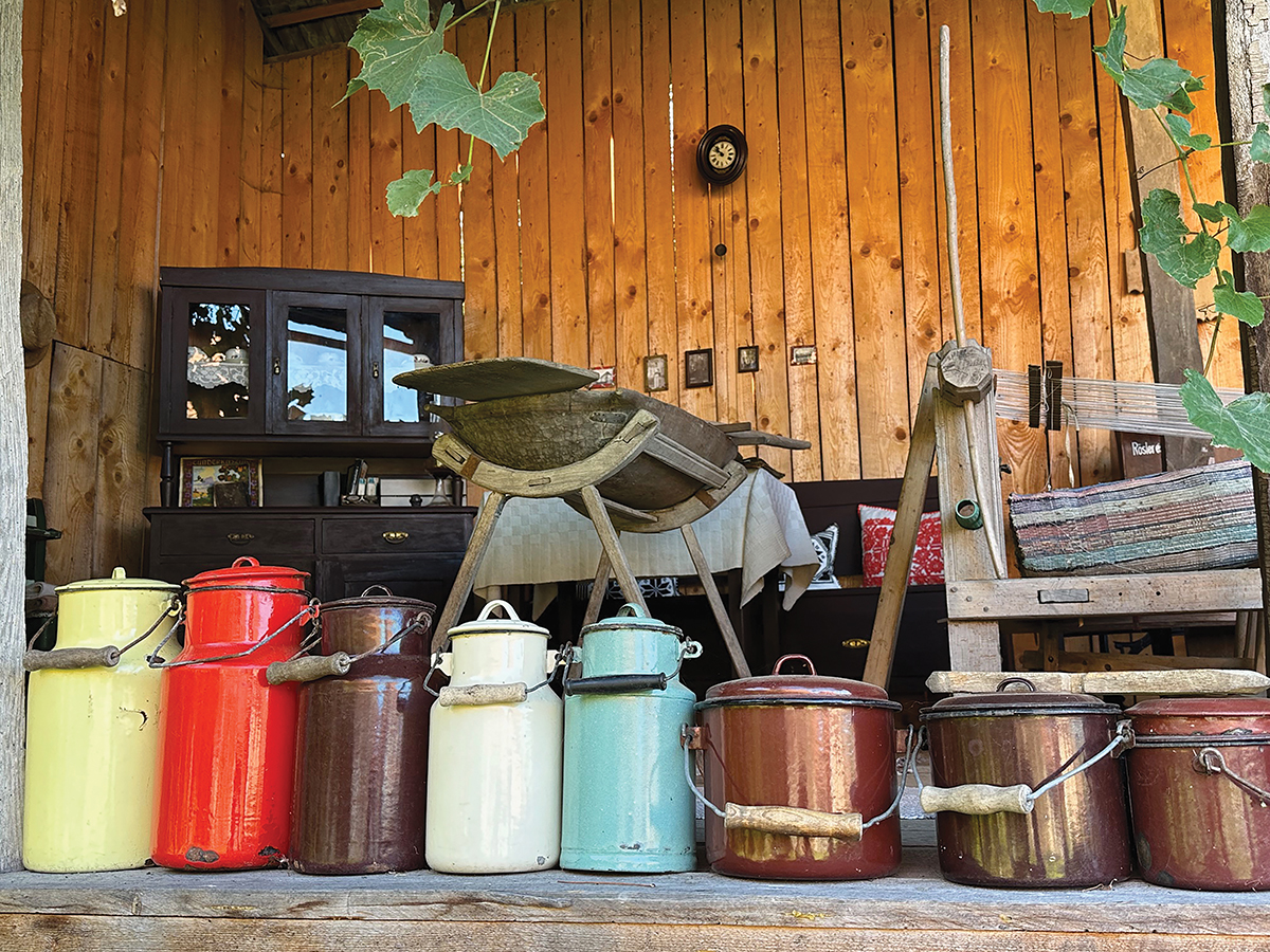 – Megőriztem minden épületnek a régi formáját, csupán a belső tereknek adtam új funkciót: a szekérszínből nappali lett, a tehénpajtából könyvtár, a juhpajtából szerszámtároló, a pincéből hűvös társalgó nagy melegekben. Ennek a megkoronázása a családi múzeum – taglalja Gizike.