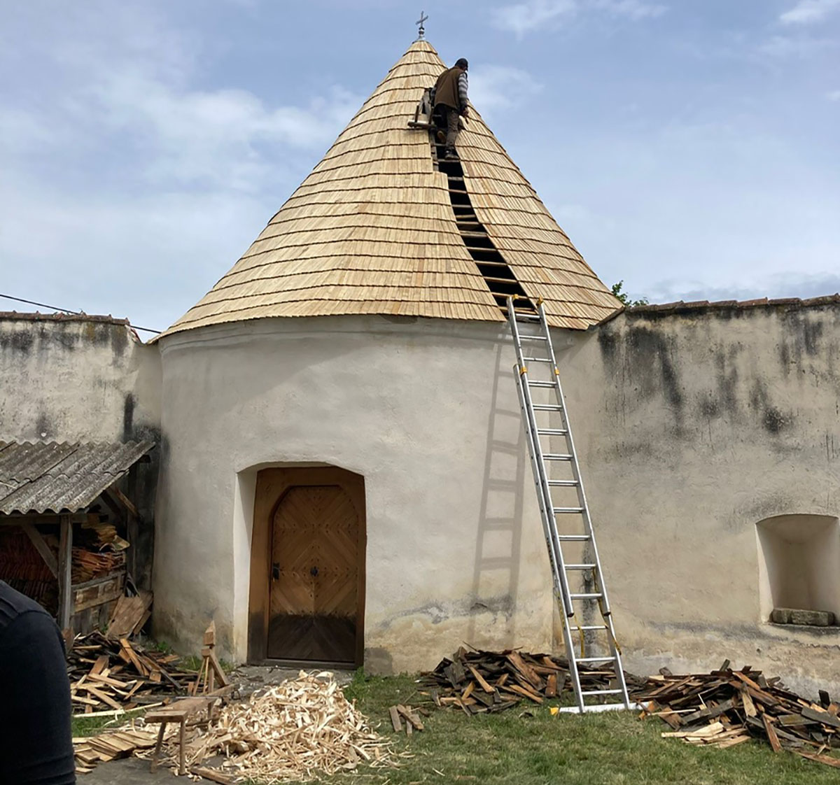 Zsolt azonban nem engedte el. Először csak kisebb megbízásokat vállalt – kerti hinták, filagóriák, sörözők tetőzetét készítette el –, de az évek során egyre több tapasztalatot szerzett, s megerősödött benne a gondolat: ebből valódi hivatás lehet. Másfél éve bejegyeztette saját cégét, és azóta már nagyobb munkák is rábízhatók: házak, templomok, kápolnák, haranglábak zsindelyezése.