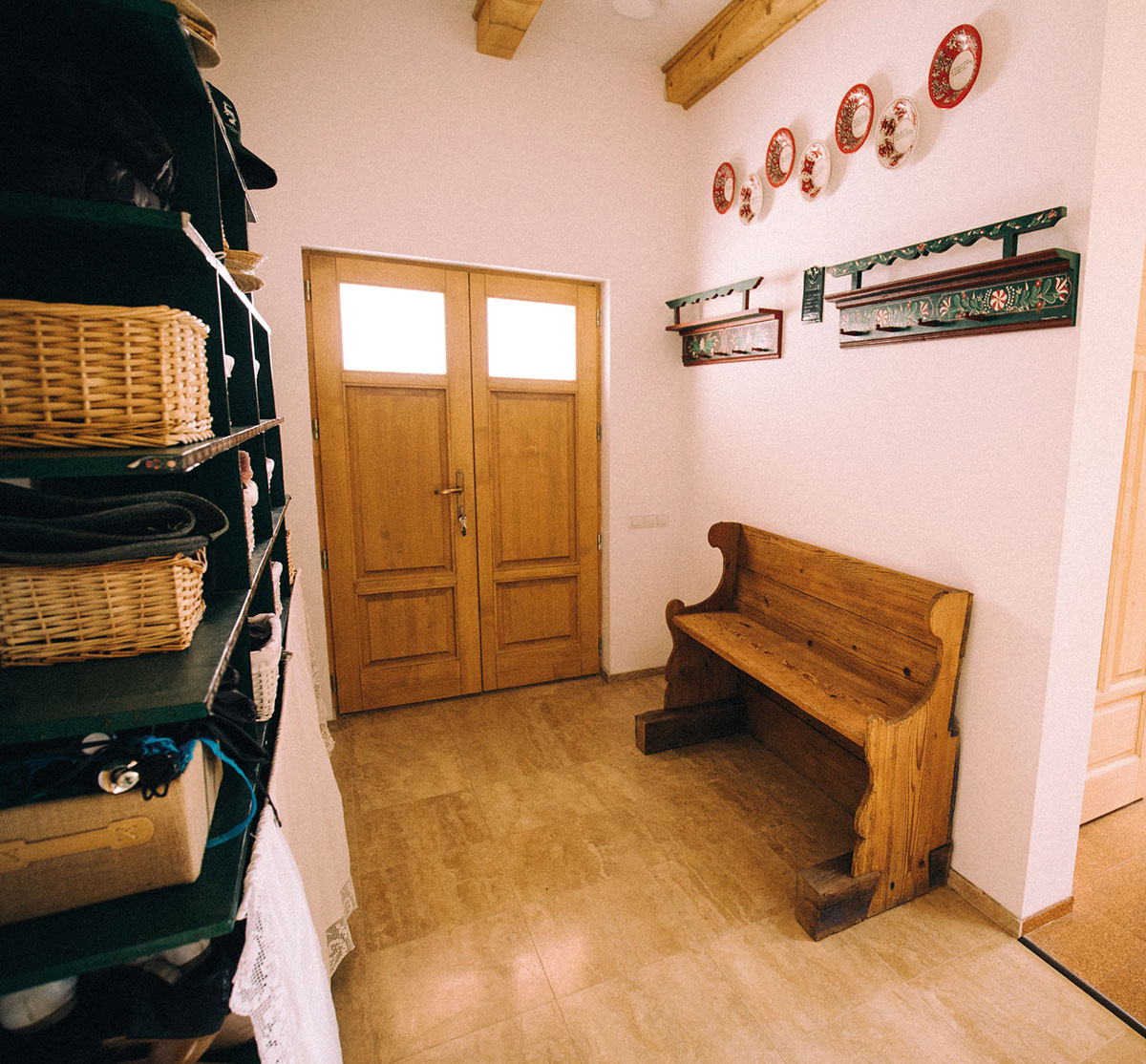 A mai kor igényeihez igazították az átmentett dizájnelemeket. A hagyományokhoz és régi tárgyakhoz kötődő házigazda gondosan válogatta össze a lakberendezést: egy régi, enyészetnek indult és tűzre ítélt templomi padot újított fel, amely az előszobában kapott helyet, a régi gerendákból néhány díszítőelemként kerül vissza a lakóházba, a fürdőszobában a mosdókagyló állványa és a tükör is felújított régi gerendából készült el. A nyílászárókat az eredeti minták után készítette el egy zetelaki asztalos, az ablakokat csipkével díszített fehér függönyök takarják. Ugyanakkor a hatalmas, fehérre meszelt búbos kemence is a régi idők hangulatát idézi. A házhoz a Benedek Áron bácsi által 2006-ban készített székelykaput is visszaállították. Idén már az udvar és a kert is nagyjából elkészült, a család asztalára innen kerül friss zöldség.