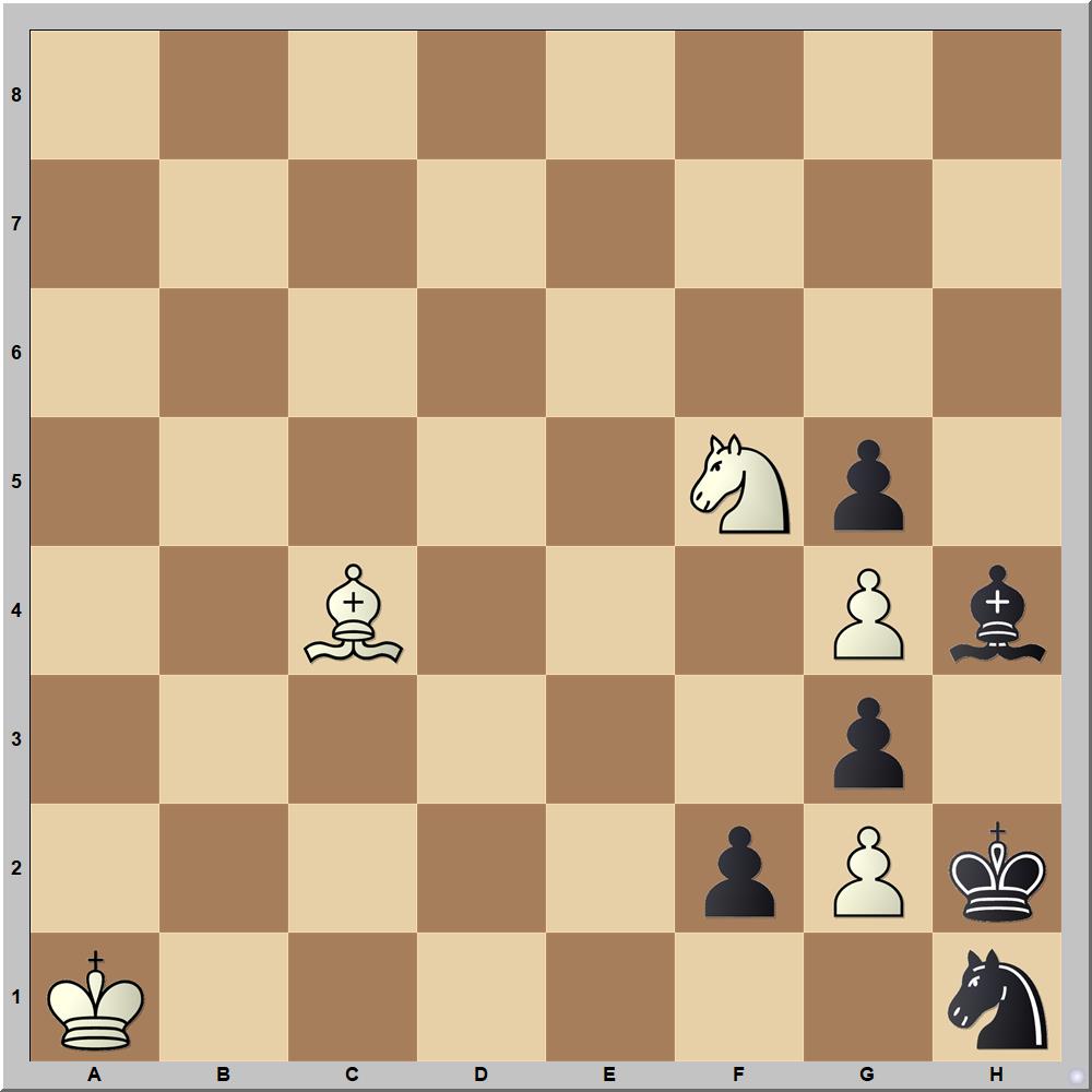 Bernhard Horwitz 1884-es művében a sötét tisztek tétlenül nézik, ahogy világos 5 lépésben mattot ad: 1.Ff1! Kg1 2.He3 Kh2 3.Hc4! Kg1 4.Hd2 Kh2 5.Hf3 matt.