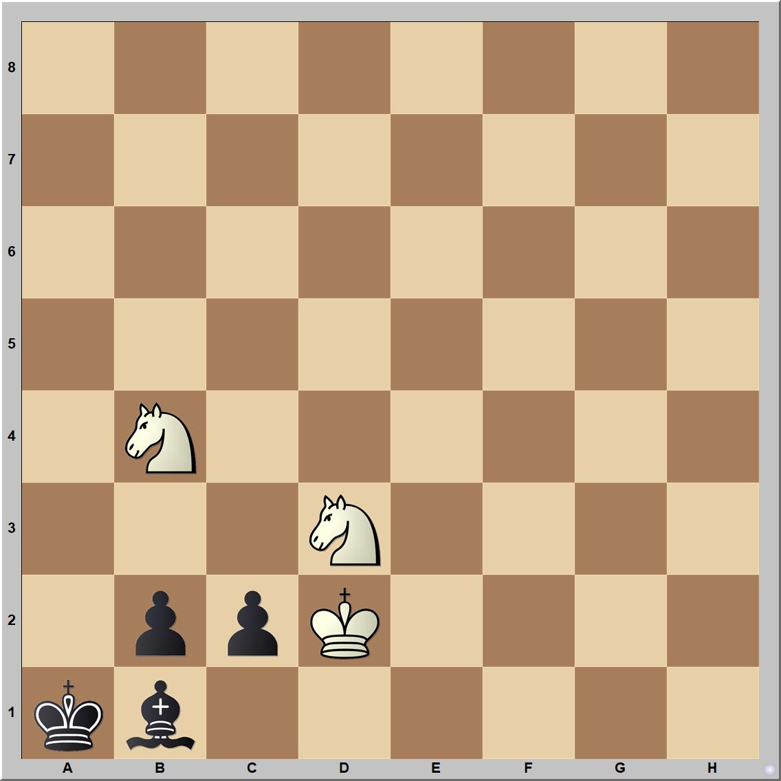 Troitzky 1898-ban közzétett művében világos egy huszárral ad mattot: 1.Hc1!! (lépéskényszert idézett elő) bc1V+ (1…Fa2 után 2.Hc2+ Kb1 3.He2 Fb3 4.Hc3 matt jöhet) 2.Kc1 Fa2 3.Hc2 matt.