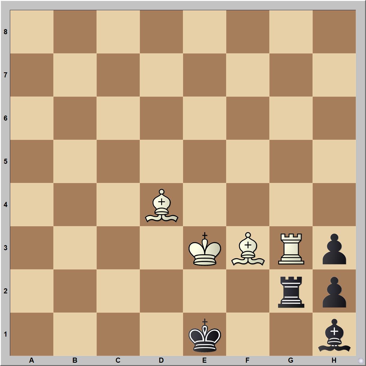 Bernhard Horwitz 1881-es tanulmányában világos két futóval ad mattot, miközben sötét két gyalogja várakozik az átváltozásra: 1.Bg2! (csak döntetlenre vezet 1.Bh3? Bg3! 2.Bg3 Ff3) hg2 (gyorsabb befejezés lenne 1…Fg2 2.Fe2! h1V 3.Fc3 matt) 2.Fc3+ Kf1 3.Fe2+ Kg1 4.Fg4 Kf1 5.Fh3 Kg1 6.Fe1 (szintén matthoz vezetne 6.Kf3 Kf1 7.Fa5 Kg1 8.Fd7 Kf1 9.Fb5+ Kg1 10.Fb6 matt) Kf1 7.Fh4 Kg1 8.Fg4 Kf1 9.Fe2+ Kg1 10.Ff2 matt.