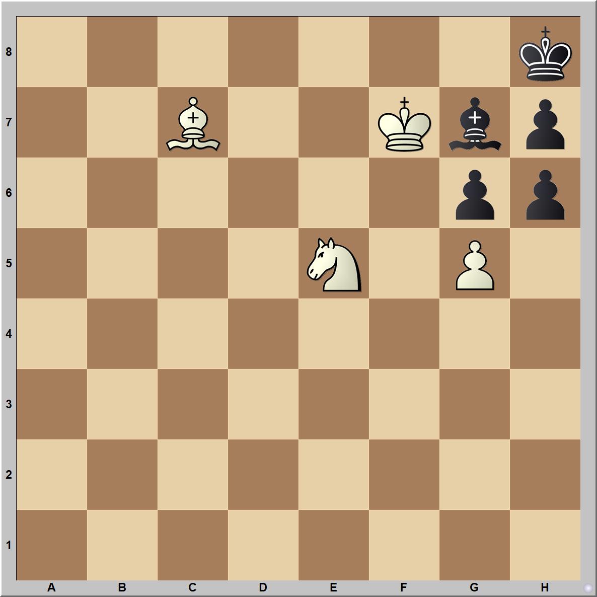 Bernhard Horwitz 1872-ben közölt tanulmányában világos egy huszárral ad mattot, amikor sötét vezér kerül a sakktáblára: 1.gh6 Fh6 2.Hg4! Fg7 3.Hh6! g5 (3...Fh6 után 4.Fe5+ Fg7 5.Fg7 matt jöhet) 4.Fd8! g5 5.Ff6! Ff6 6.Kf6 g3 7.Kf7 g2 8.Kf8 g1V 9.Hf7 matt (1-0).