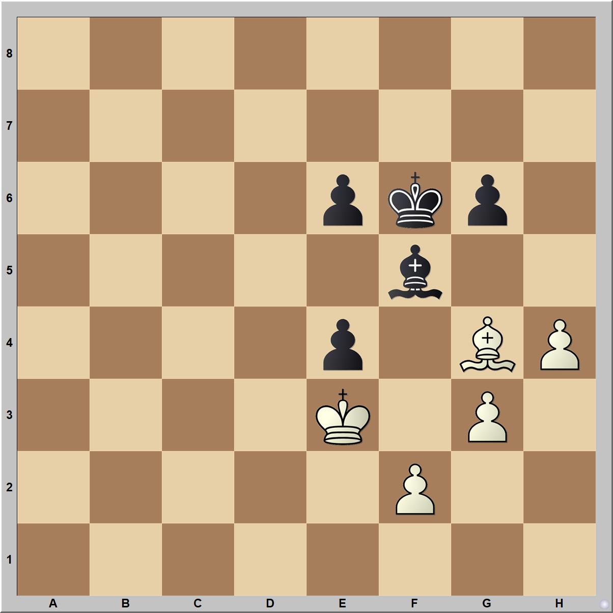 Bernhard Horwitz 1863-as tanulmányában világos nyert gyalogvégjátékot ér el futócserével: 1.Ff5! Kf5 (1…ef5 2.Kf4! vagy 1…gf5 2.Kd4! nyer) 2.Kd4 e5+ 3.Ke3! nyer (1-0).