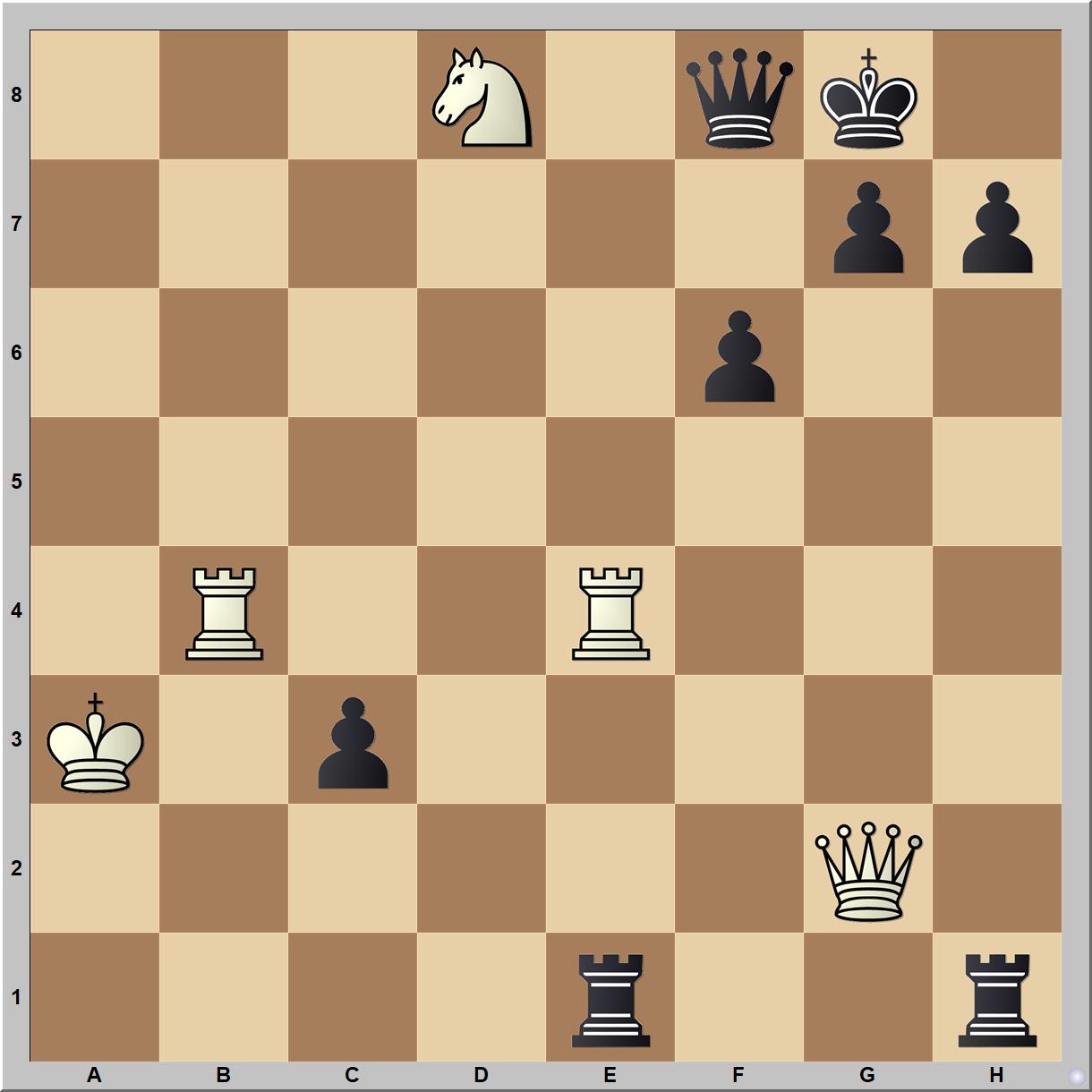 A 65 éves ukrán Alexander Stavrietsky 1999-ben alkotott művében világos mindhárom nehéztisztjét feláldozva egy szál huszárral ad mattot a 11. lépésben: 1.Va2+ Kh8 2.Hf7+ Kg8 3.Hd6+! Kh8 4.Bb8! (első bástyaáldozat) Vb8 5.Hf7+ Kg8 6.Hd8+! Kh8 (6…Kf8 7.Vf7 matt) 7.Be8+!! (második bástyaáldozat) Be8 8.Hf7+ Kg8 9.Hh6+ (kettős sakk) Kh8 (9…Kf8 10.Vf7 matt) 10.Vg8+!! (vezéráldozat) Bg8 11.Hf7 „fojtott matt” (1-0).