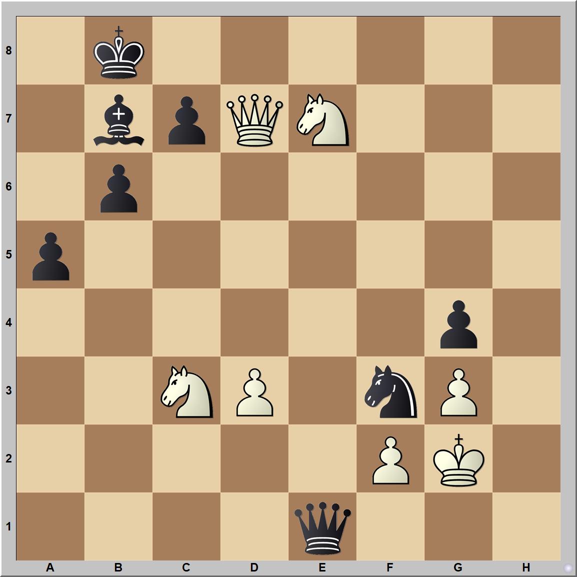 Philipp Stamma több mint 200 évvel ezelőtt szerkesztett művében sötét 1…Vg1 mattal fenyeget, de ezt világos két huszáráldozattal megelőzi és nyolc lépésben mattot ad: 1.Vd8+! Ka7 (1…Fc8 után 2.Vc8+ Ka7 3.Hc6 matt) 2.Hb5+ Ka6 3.Hc7+ Ka7 4.Hc8+ Fc8 (4…Kb8 után 5.Hd6+ Fc8 6.Vc8+ Ka7 7.Hcb5 matt) 5.Hb5+ Kb7 6.Vc7+ Ka6 (6…Ka8 7.Va7 matt) 7.Vc8+ Kb5 8.Vc4 matt (1-0).