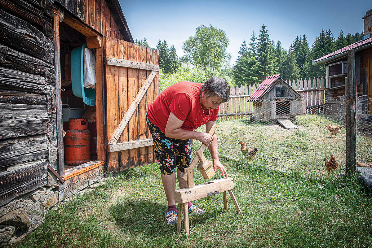 A kenyérsütés fontos: a kert sarkában felállított kemencébe tizenegy kenyér fér be, ez 25 kilogrammot jelent. Nélkülözhetetlen a szénvonó, a pemete, amivel kiseprik a kemencét, illetve a bevetőlapát. Két óra alatt meg is sül a friss, ropogós héjú kenyér. A fészerben álló pityókatörő – mert a pityóka nem maradhat ki a kenyérből – Magdolna féltett kincse: még néhai szomszédja, Fodor István készítette neki ajándékba. Kovásznak mindig az előző tésztából hagynak egy kujaknyi darabot, amit aztán a hűtőben tárolnak a következő sütésig. Igen: a hűtőben. A fejlődés a hegyvidéki tanyavilágba is besurran.