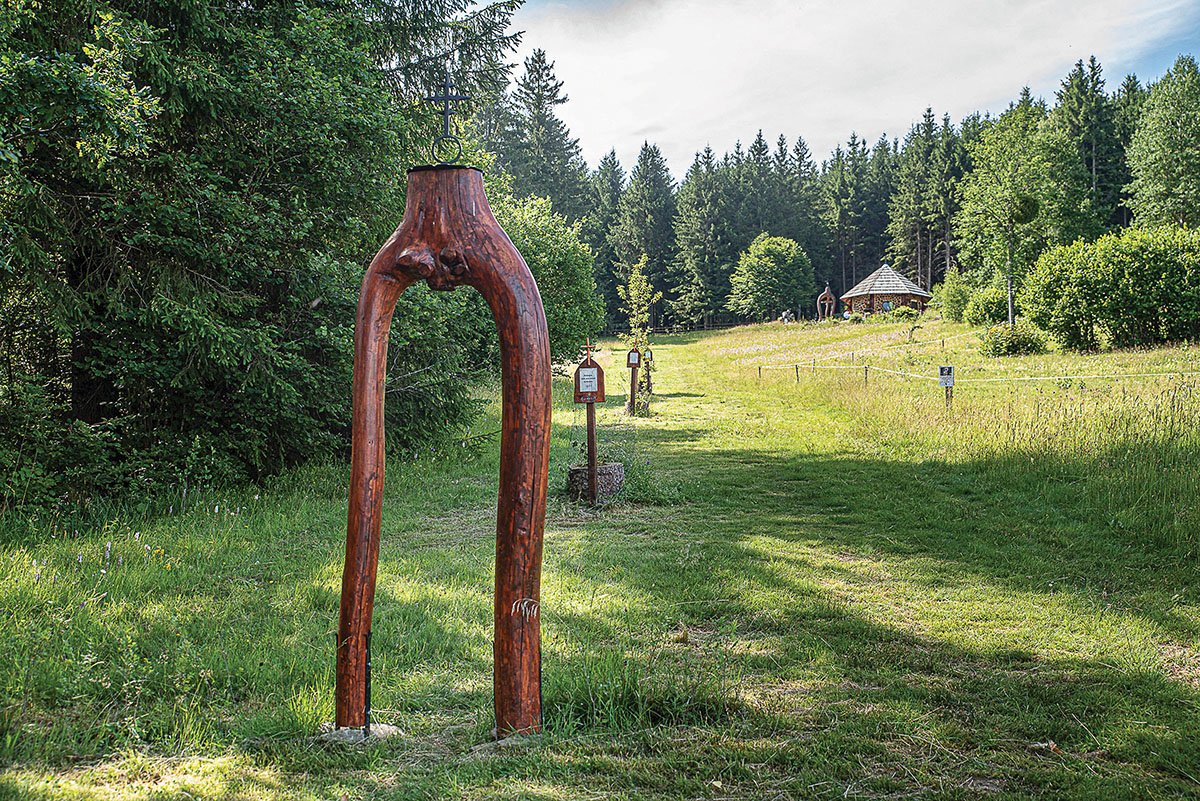 Ettől a kápolnától indult el a székelyföldi vándorbölcsőprogram hat esztendeje. A kápolnához vezető jelképes keresztút hatalmas bükkfától indul, ahol egy keskeny kapu várja a zarándokot. „Boldogok, akik nem látnak és hisznek” – szól az első üzenet, s a stációk mindegyikénél olvasható egy tanítás: „Szeresd felebarátodat, mint saját magadat!” és „Én vagyok az út, az igazság és az élet”. A kapu keresztjét kalauzunk maga kovácsolta, miután elvégzett egy kovácstanfolyamot.